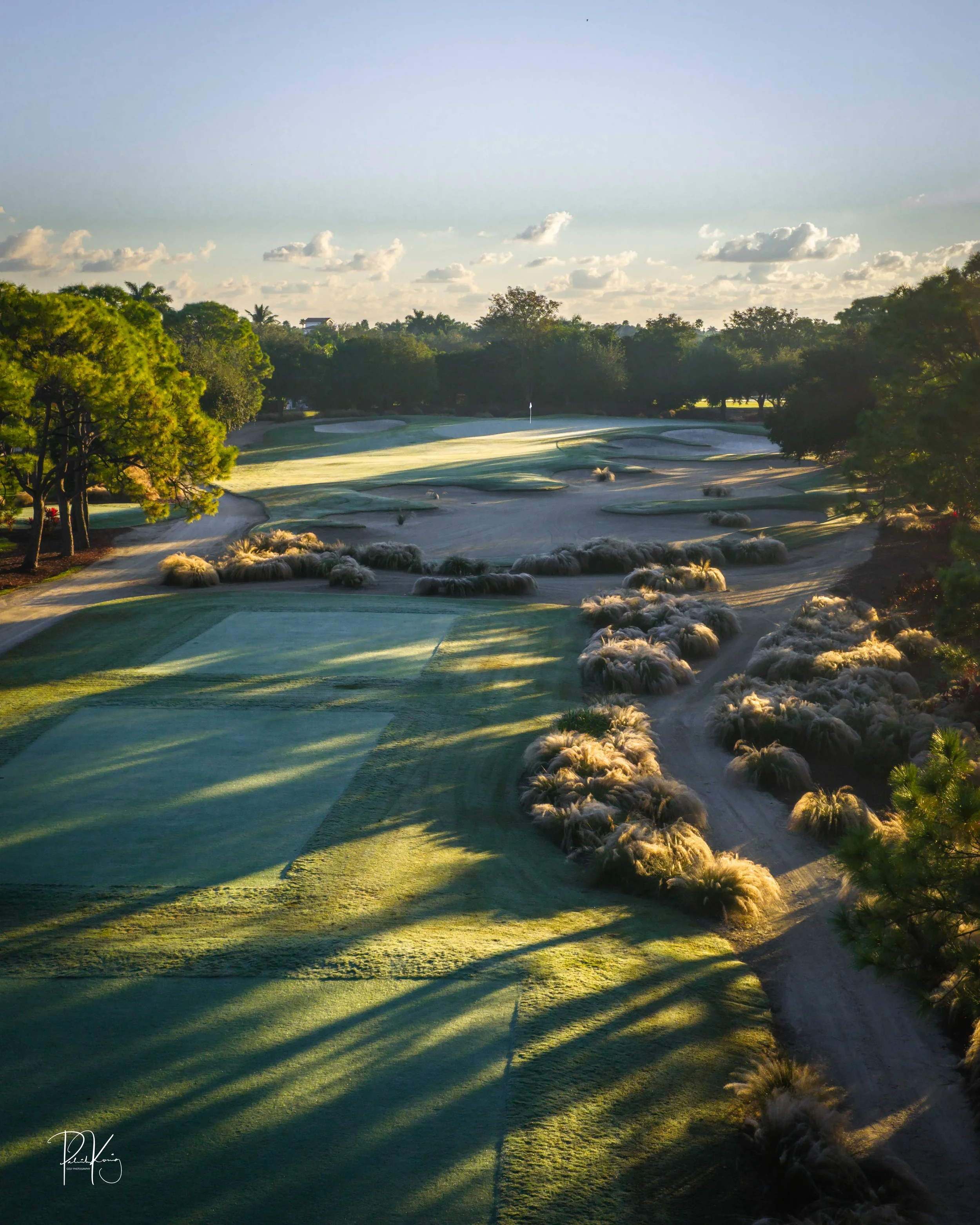From above and behind the 7th green, the morning sun casts some glorious colors across the fairway. Most importantly, two abundantly tall palm trees frame the pin for our viewing pleasure. This glorious combination of colors and composition is enough to propel the image below onto the podium with the bronze medal.