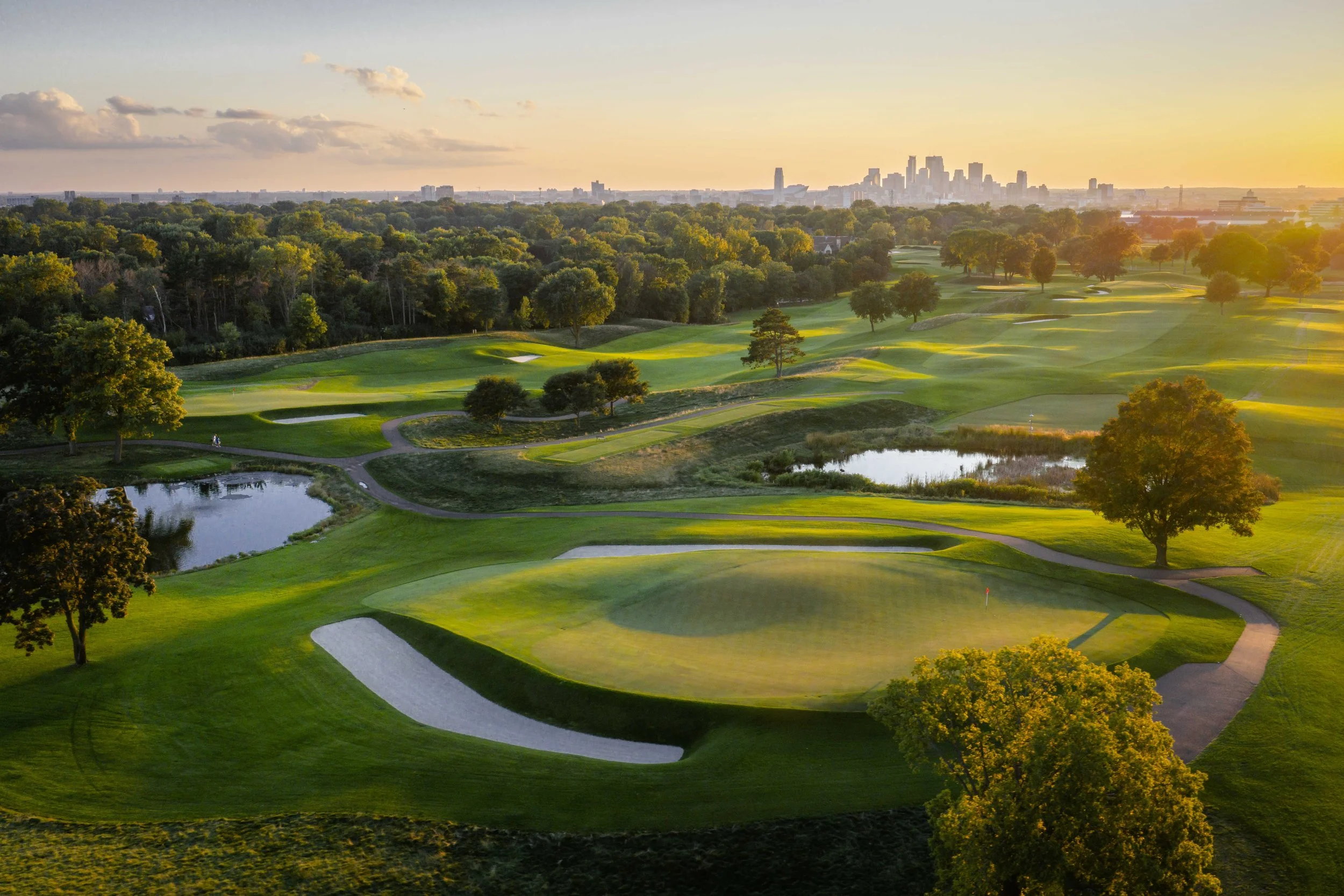 The third hole features some of the most dramatic topography at Midland Hills and boasts what some might consider the signature hole. There is a lone fairway bunker that should be avoided which will set up a dramatic download shot towards this “punch bowl” shaped green. The Minneapolis skyline looms to the golfer’s right and smiles are all but guaranteed.
