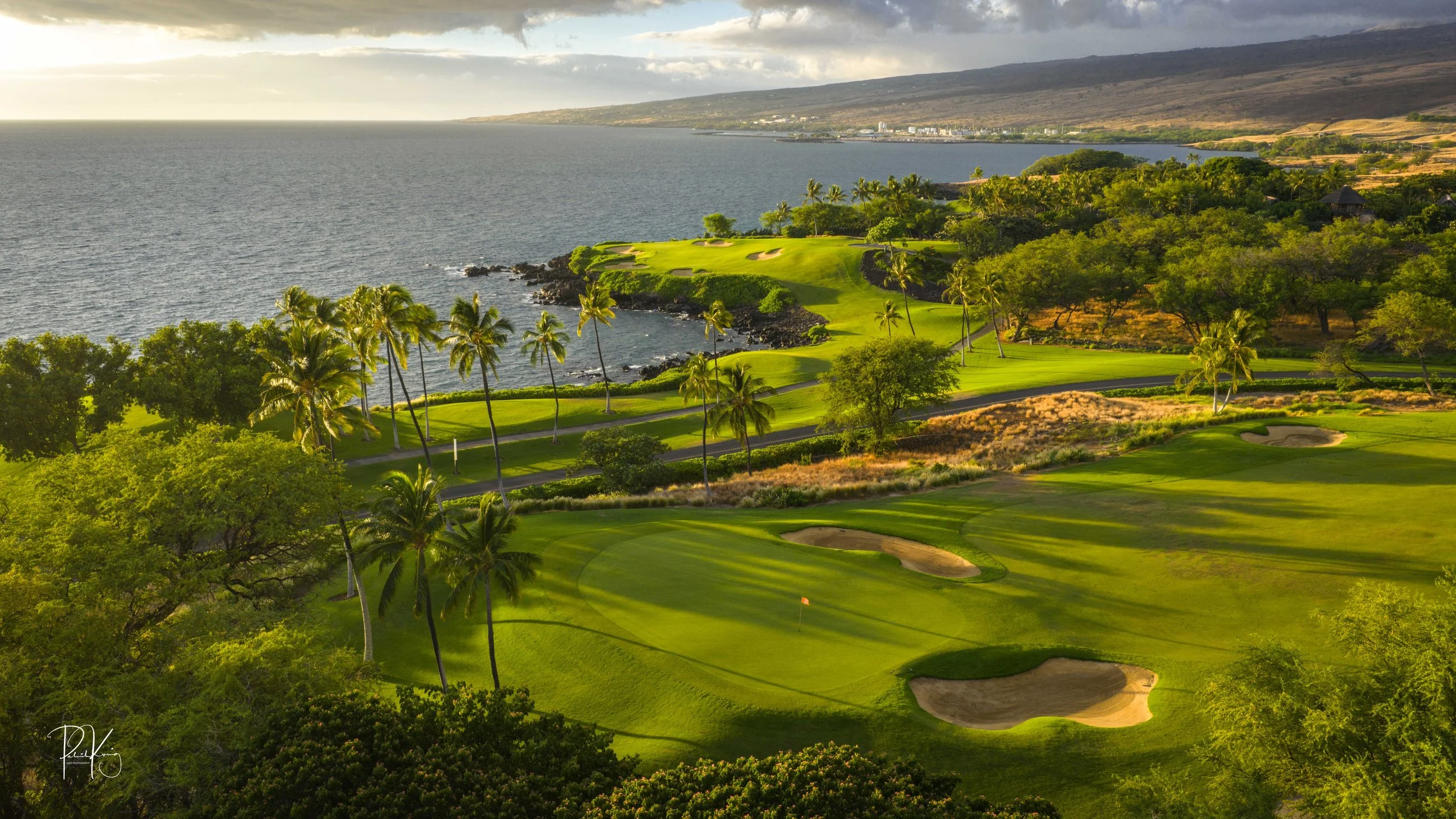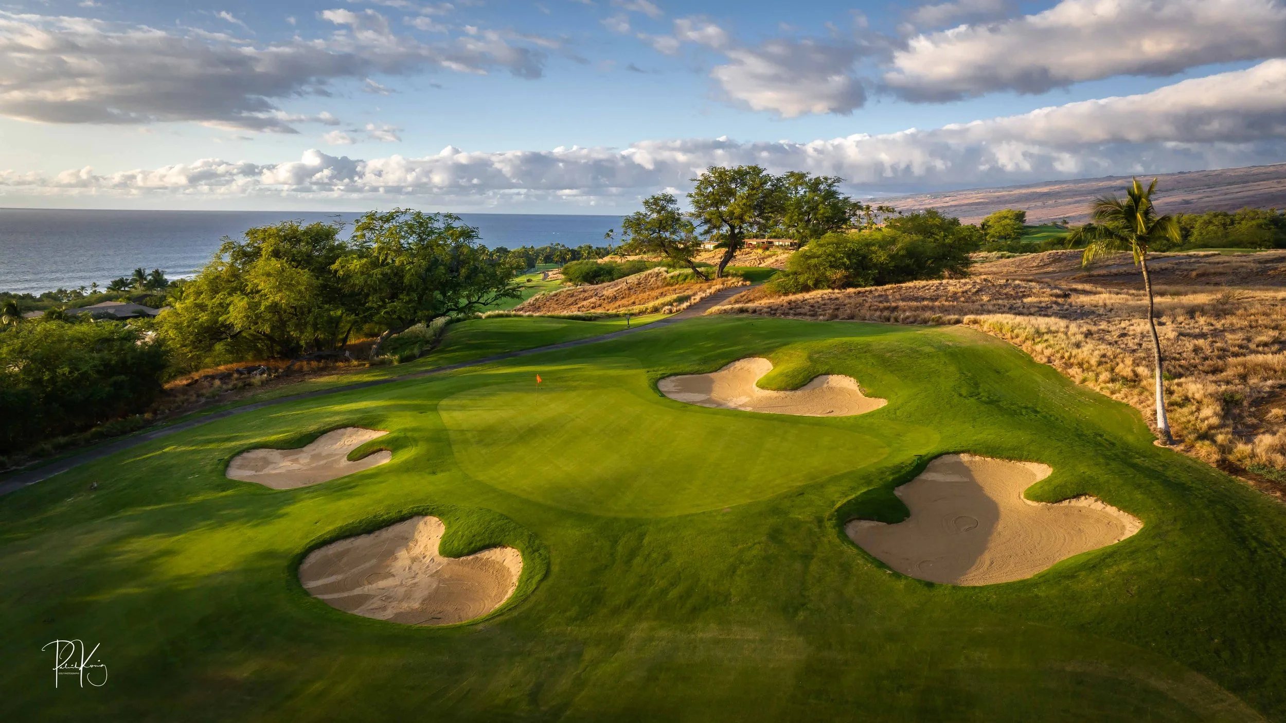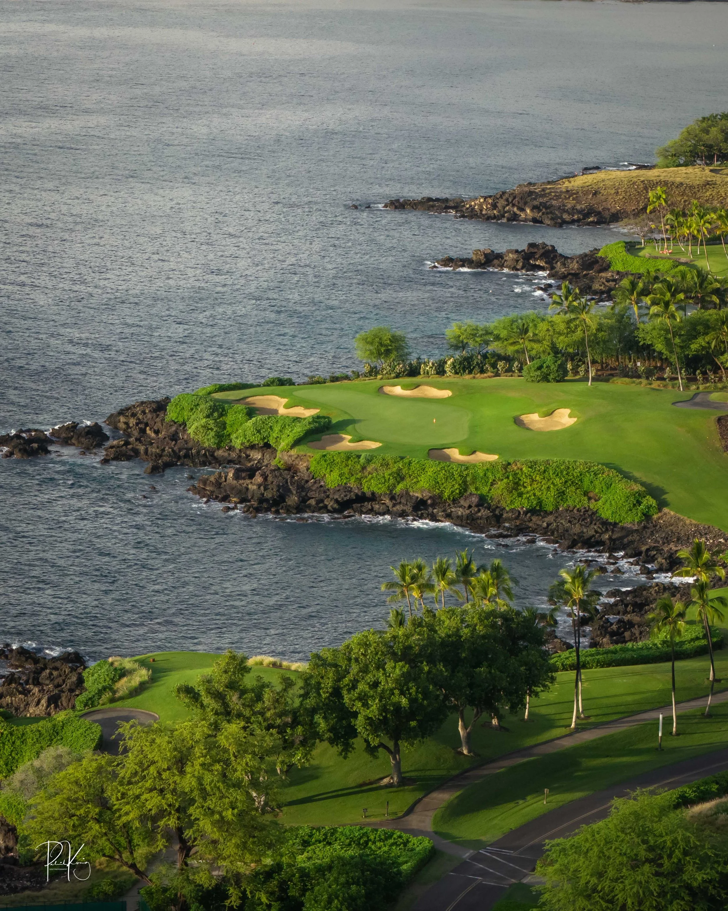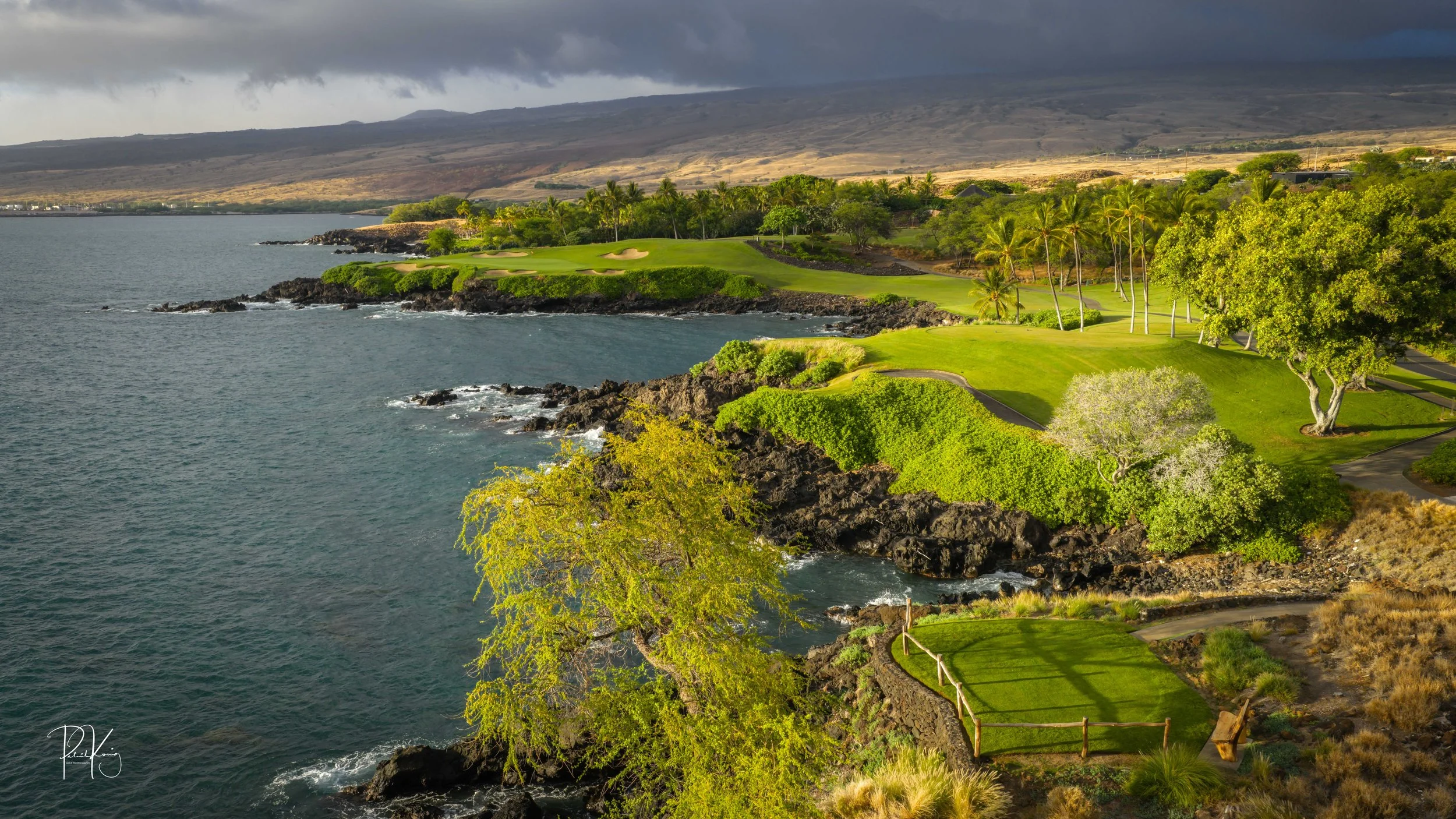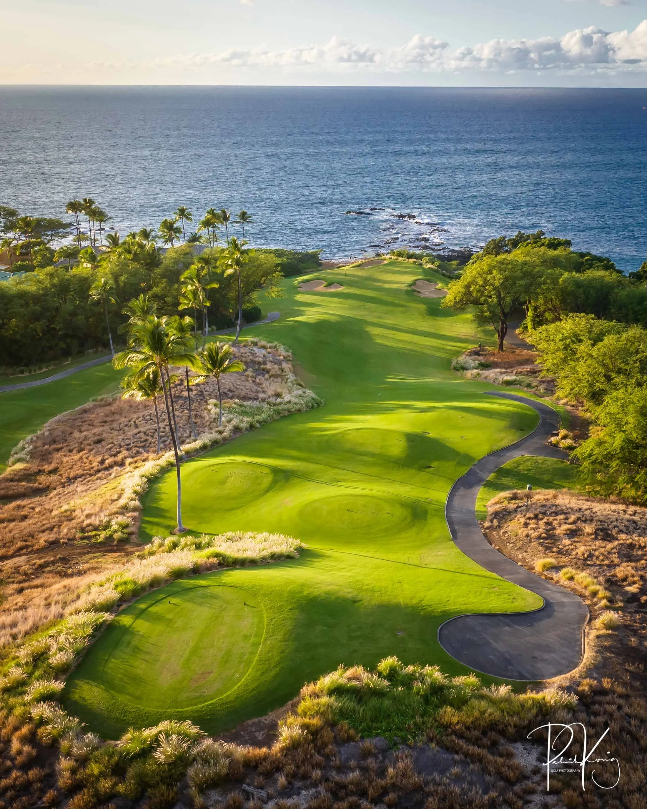 The 3rd hole is the signature hole at Mauna Kea and one of the grandest ocean side par 3’s in Hawaii. At 272 from the championship tees, the 3rd hole is also one of the longest carries over the ocean in golf. Almost no one plays the back tees unless you want to ensure a donation to the sea serpents. Most golfers will play 180 yards over the ocean to a large green. Finding the green here always feels like a grand sense of accomplishment. As this is one of the most scenic golf holes in Hawaii, I am including an unprecedented 16 images of this golf hole. This hole is a stunner.