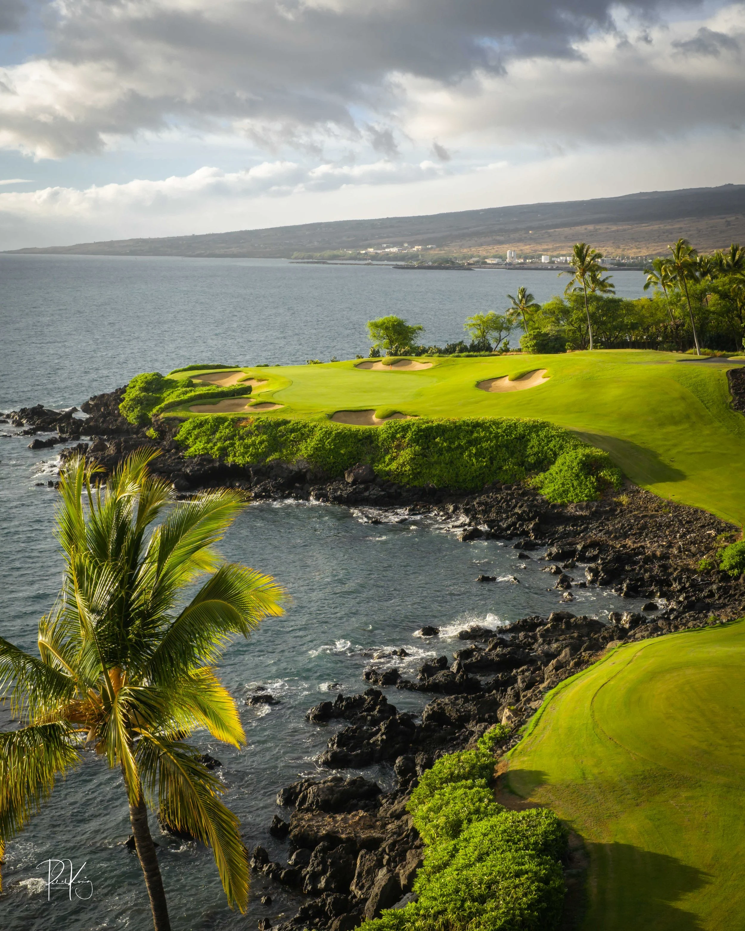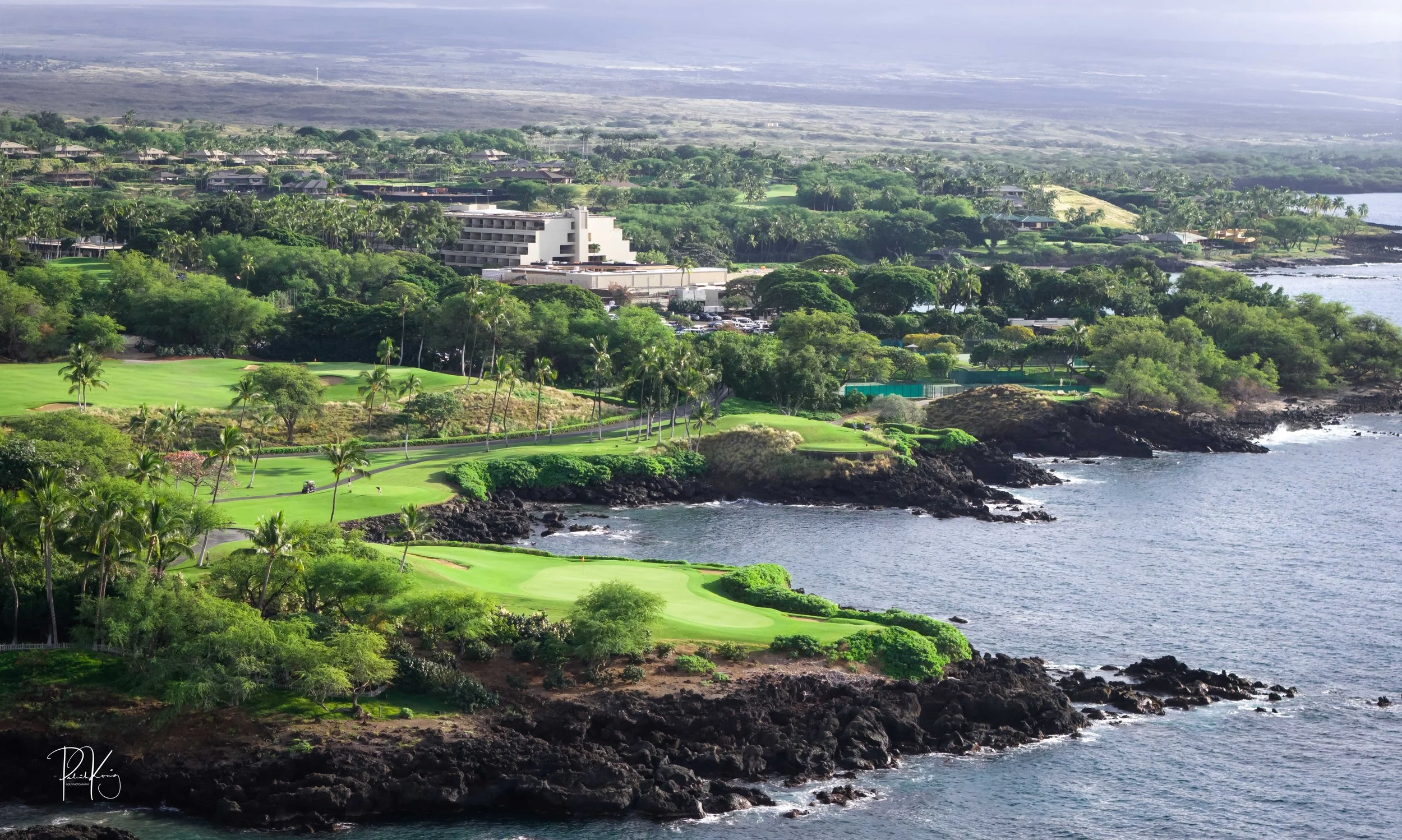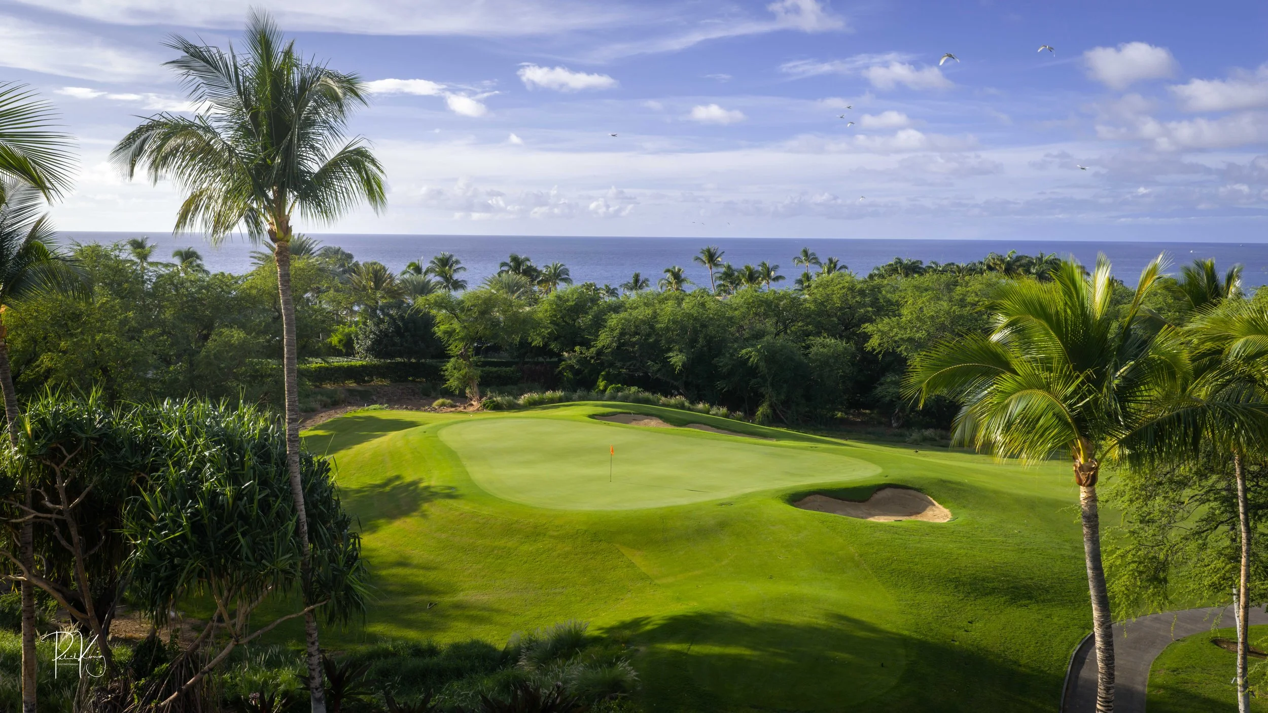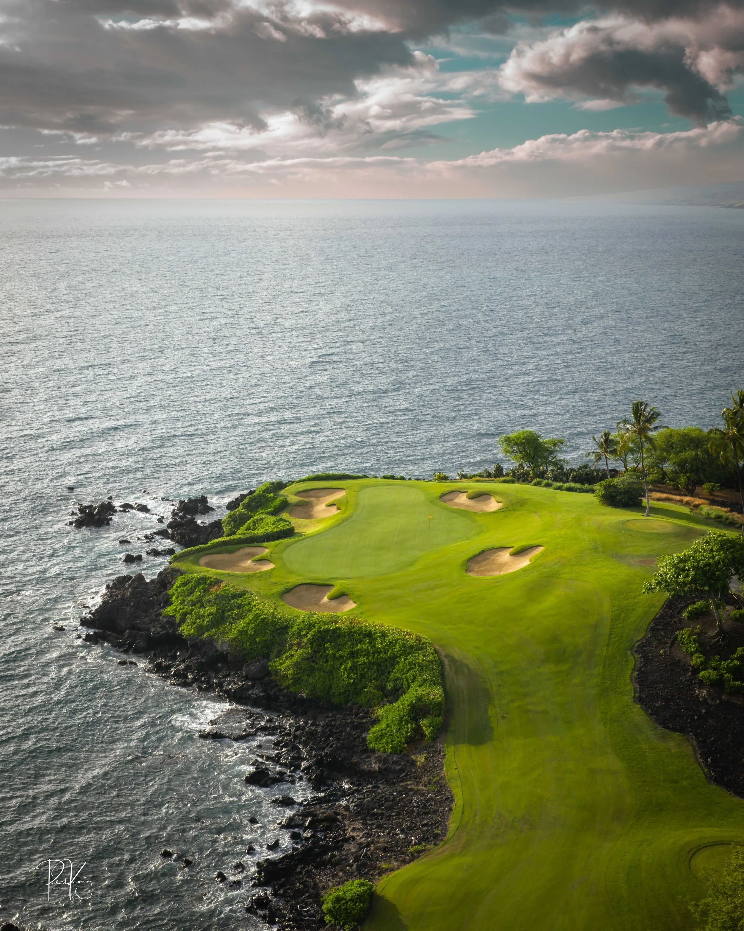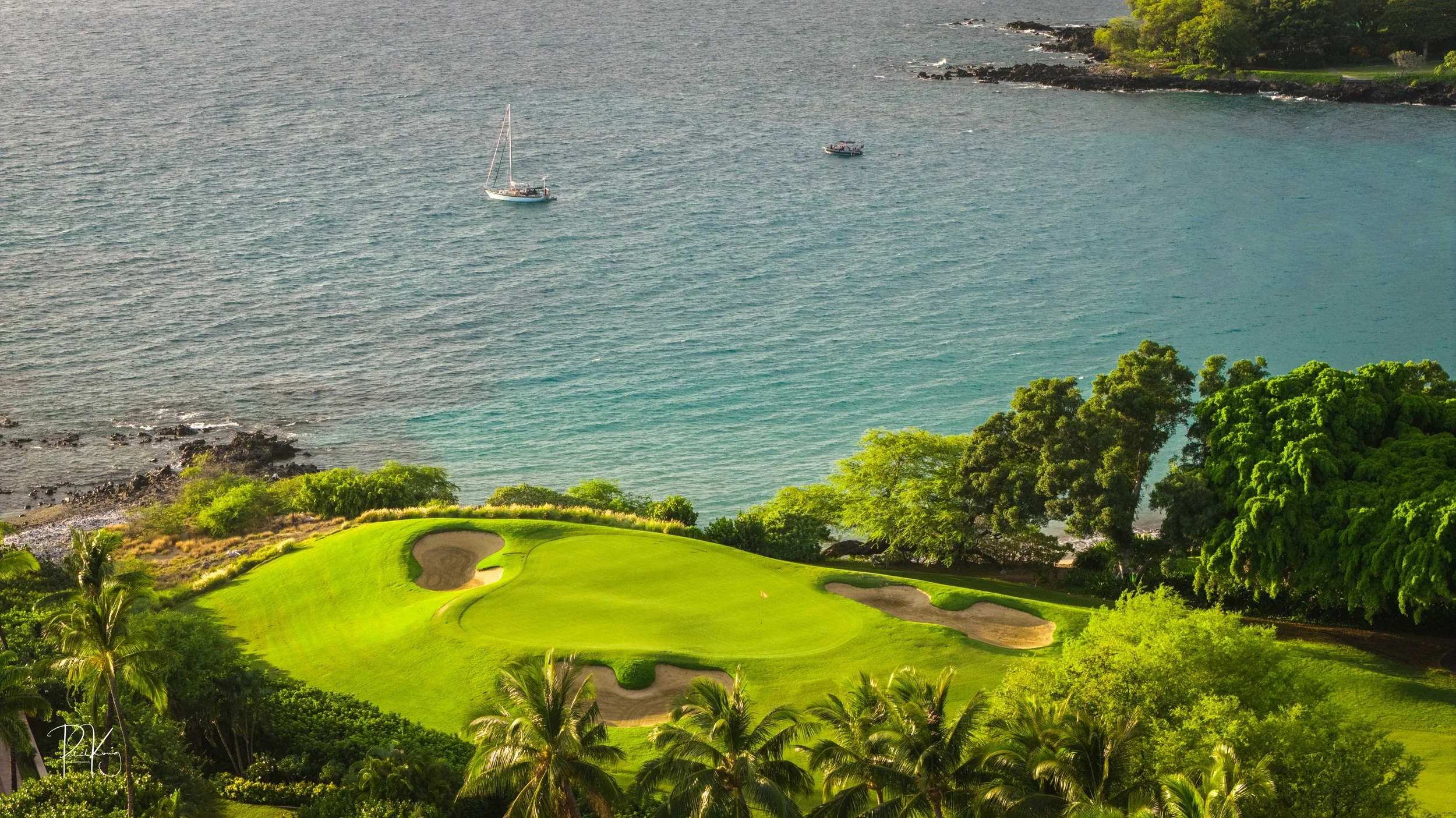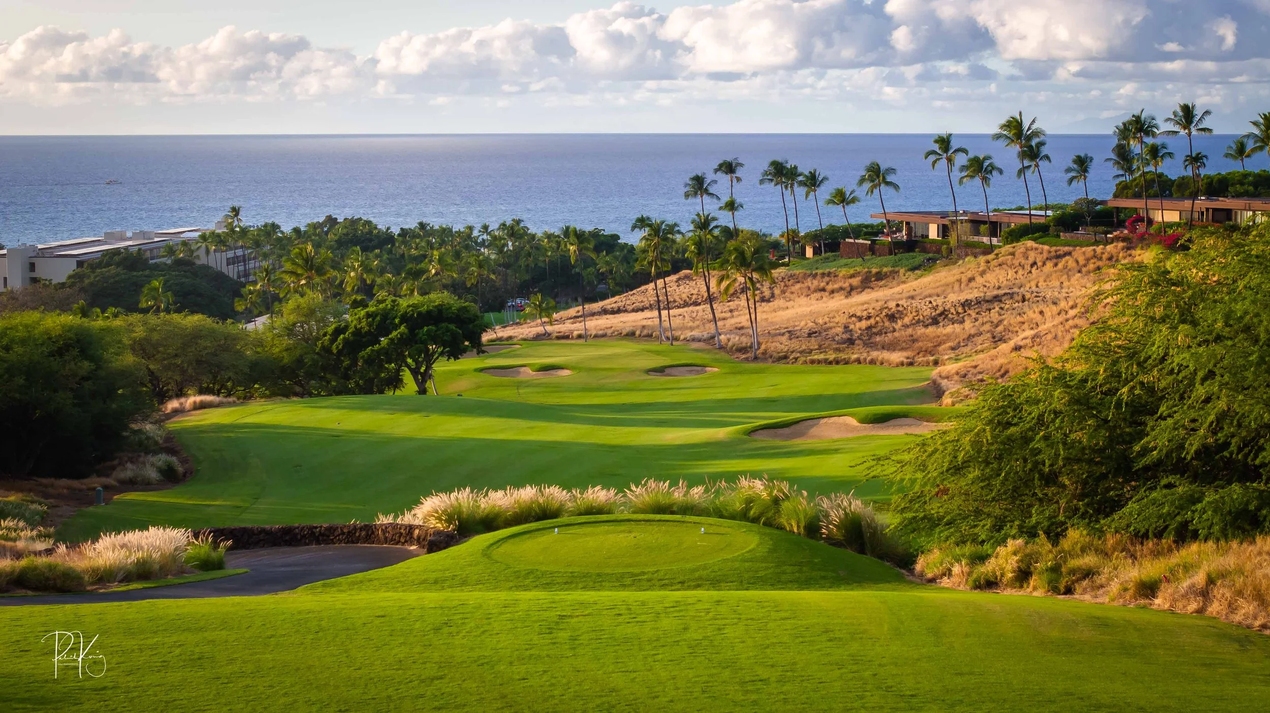 The 3rd hole is the signature hole at Mauna Kea and one of the grandest ocean side par 3’s in Hawaii. At 272 from the championship tees, the 3rd hole is also one of the longest carries over the ocean in golf. Almost no one plays the back tees unless you want to ensure a donation to the sea serpents. Most golfers will play 180 yards over the ocean to a large green. Finding the green here always feels like a grand sense of accomplishment. As this is one of the most scenic golf holes in Hawaii, I am including an unprecedented 16 images of this golf hole. This hole is a stunner.