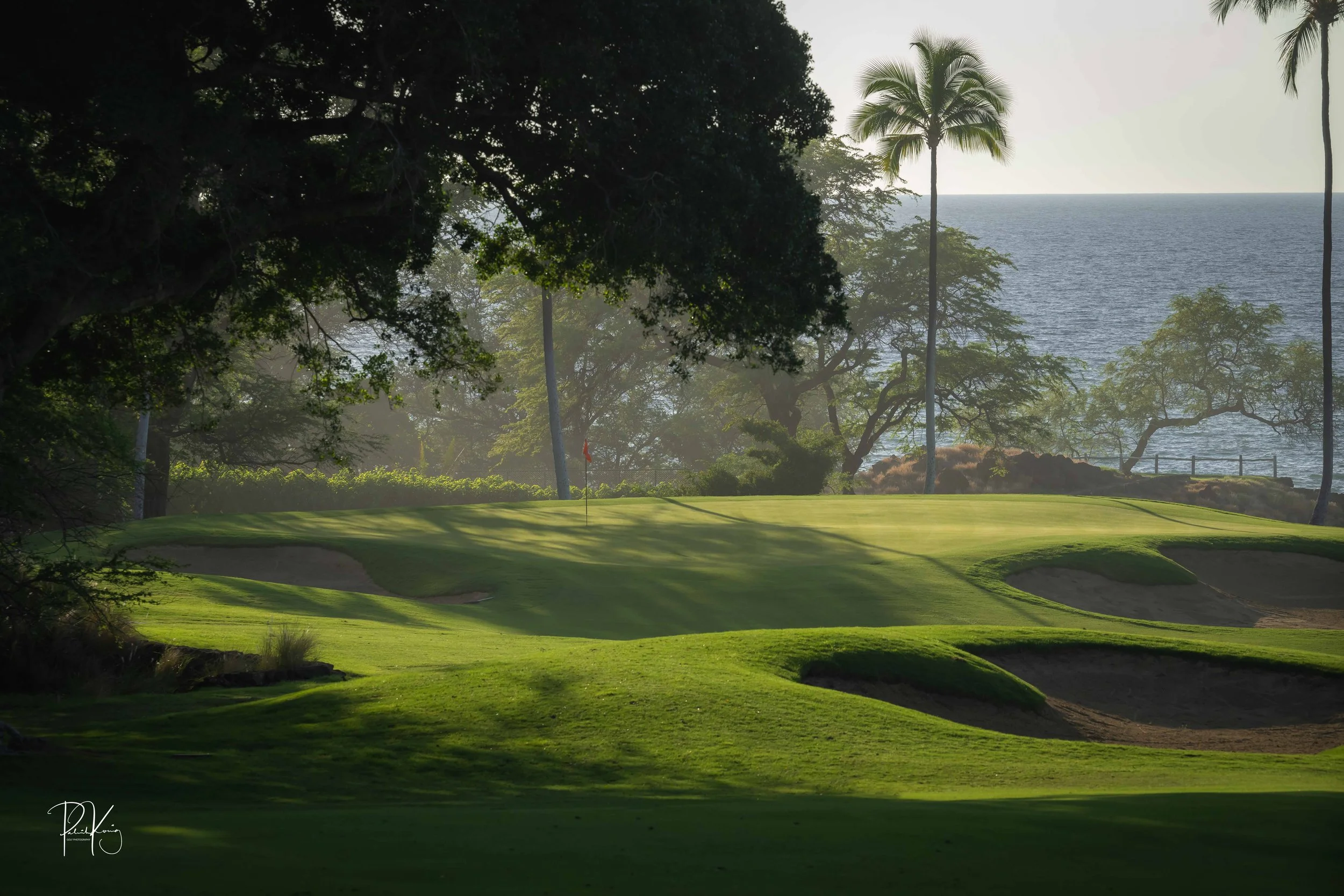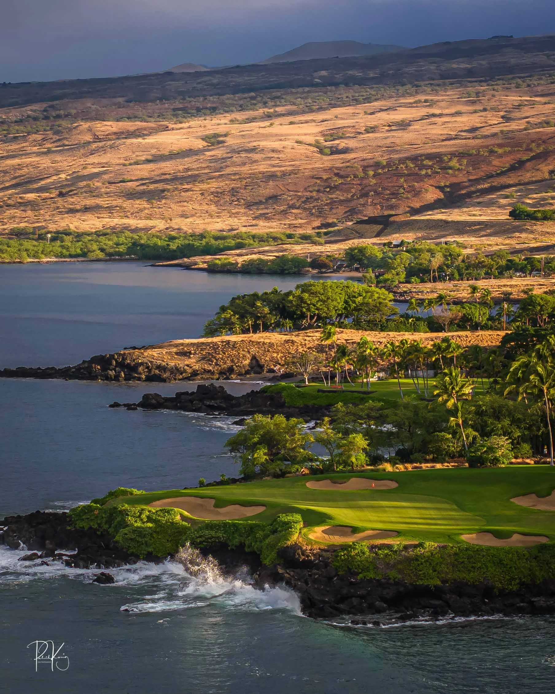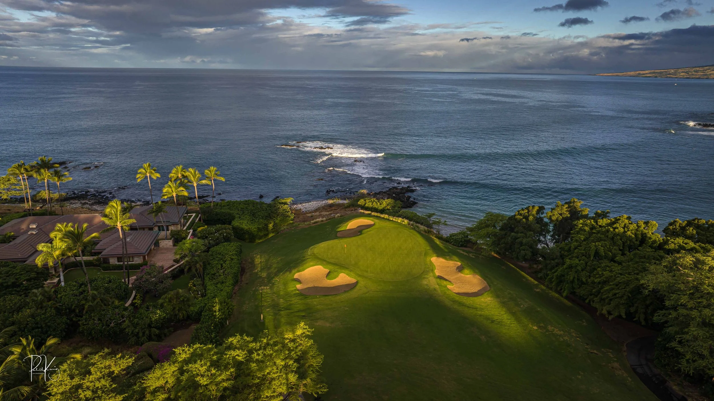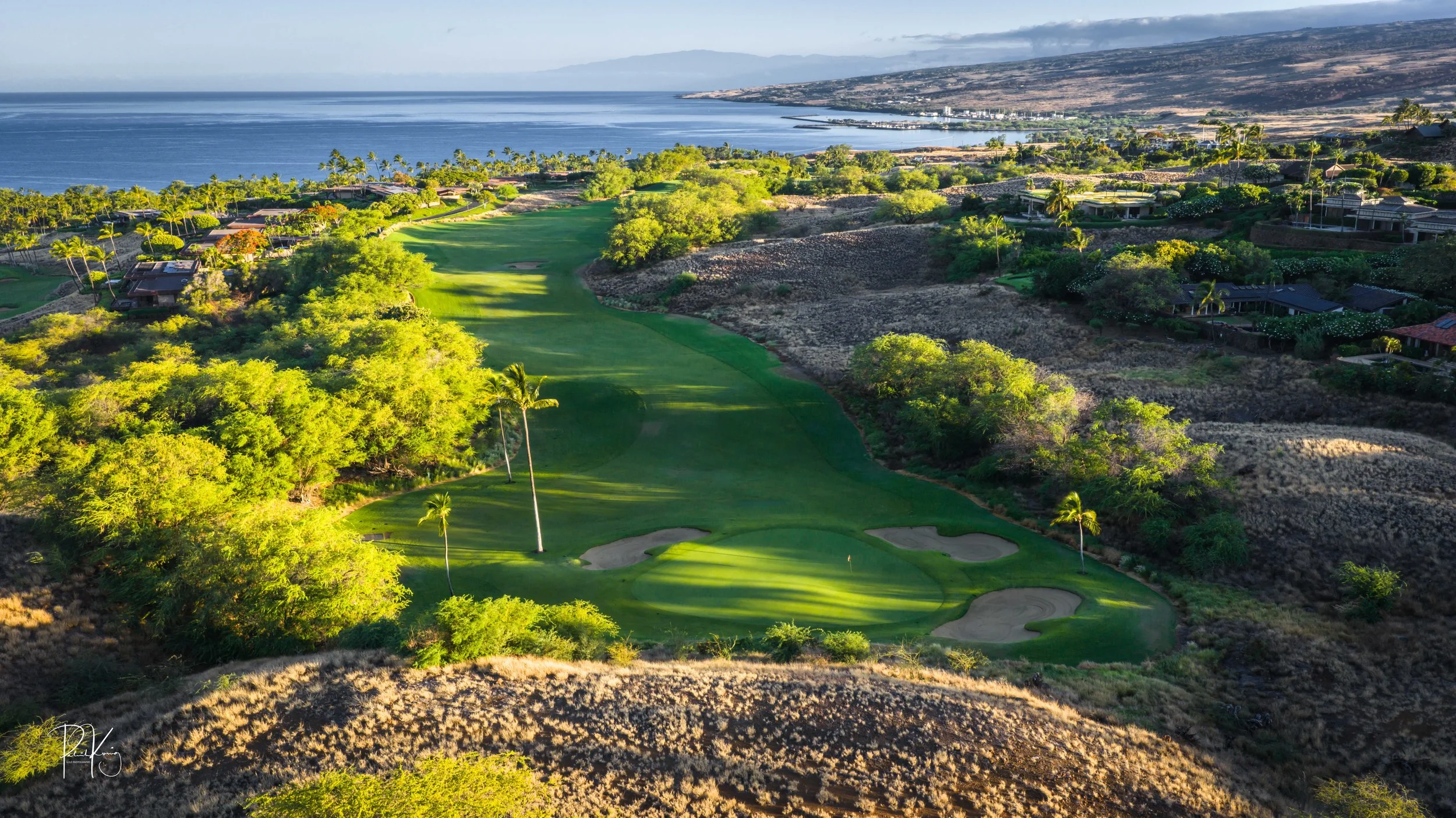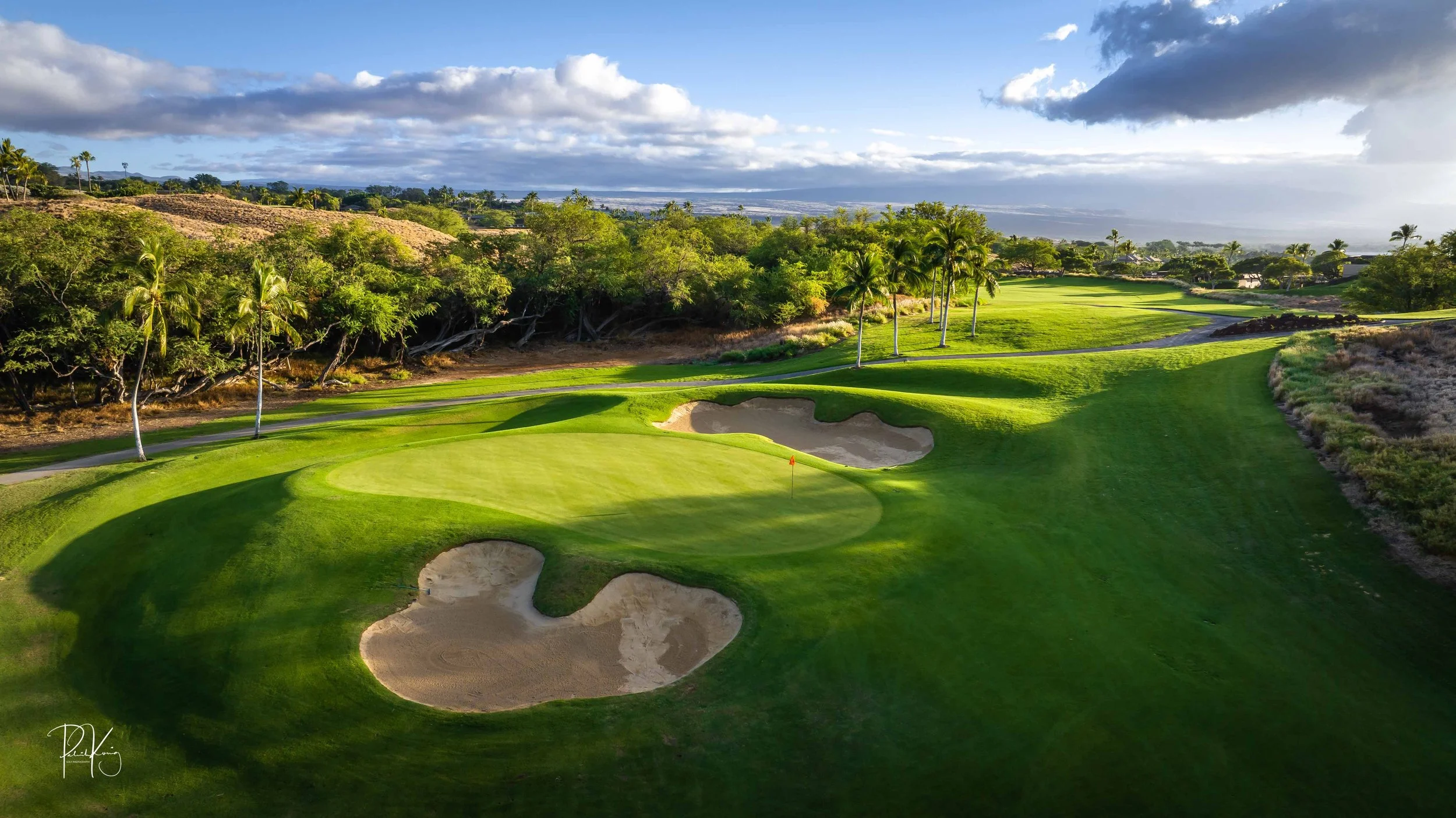 The 3rd hole is the signature hole at Mauna Kea and one of the grandest ocean side par 3’s in Hawaii. At 272 from the championship tees, the 3rd hole is also one of the longest carries over the ocean in golf. Almost no one plays the back tees unless you want to ensure a donation to the sea serpents. Most golfers will play 180 yards over the ocean to a large green. Finding the green here always feels like a grand sense of accomplishment. As this is one of the most scenic golf holes in Hawaii, I am including an unprecedented 16 images of this golf hole. This hole is a stunner.