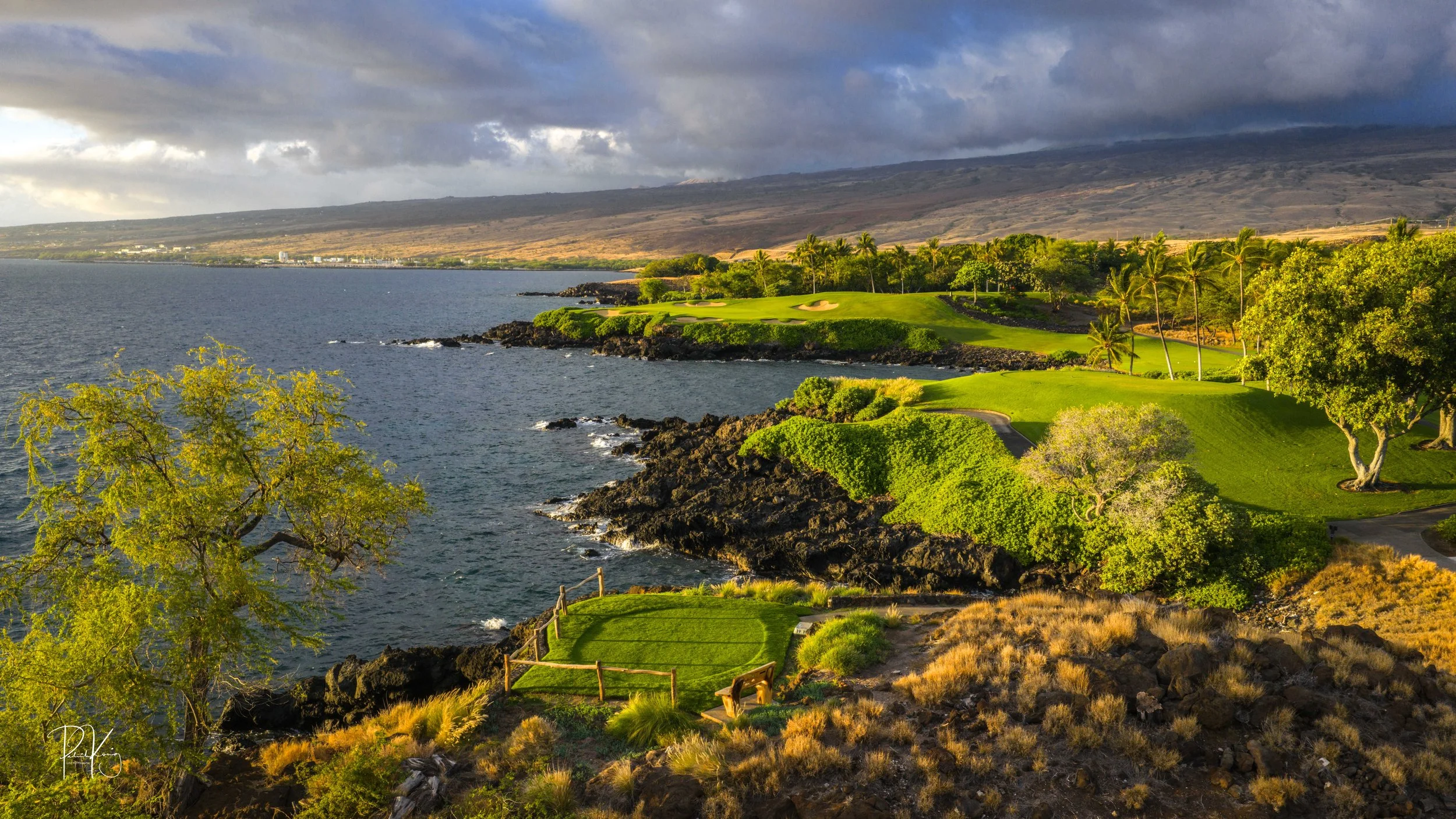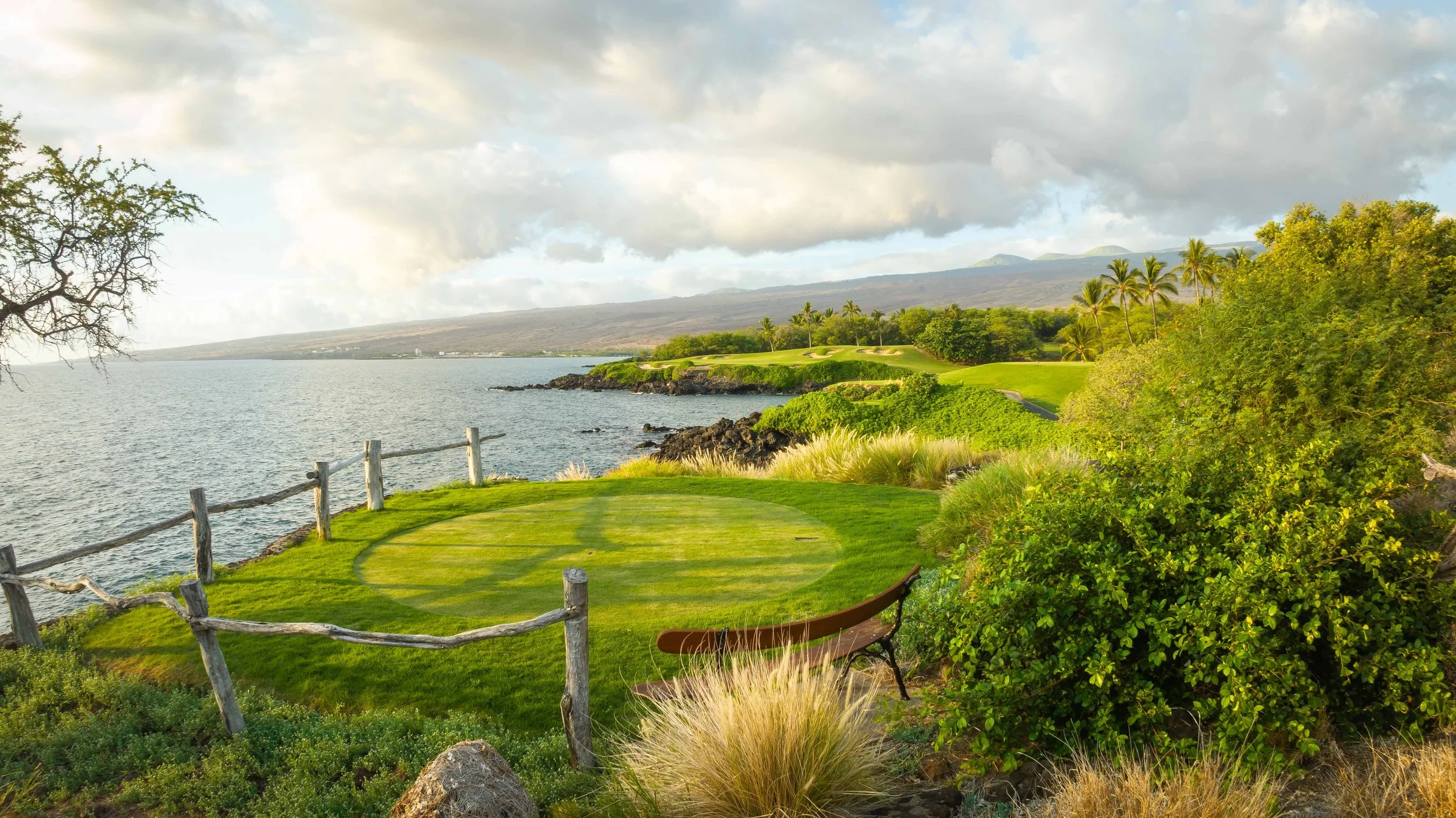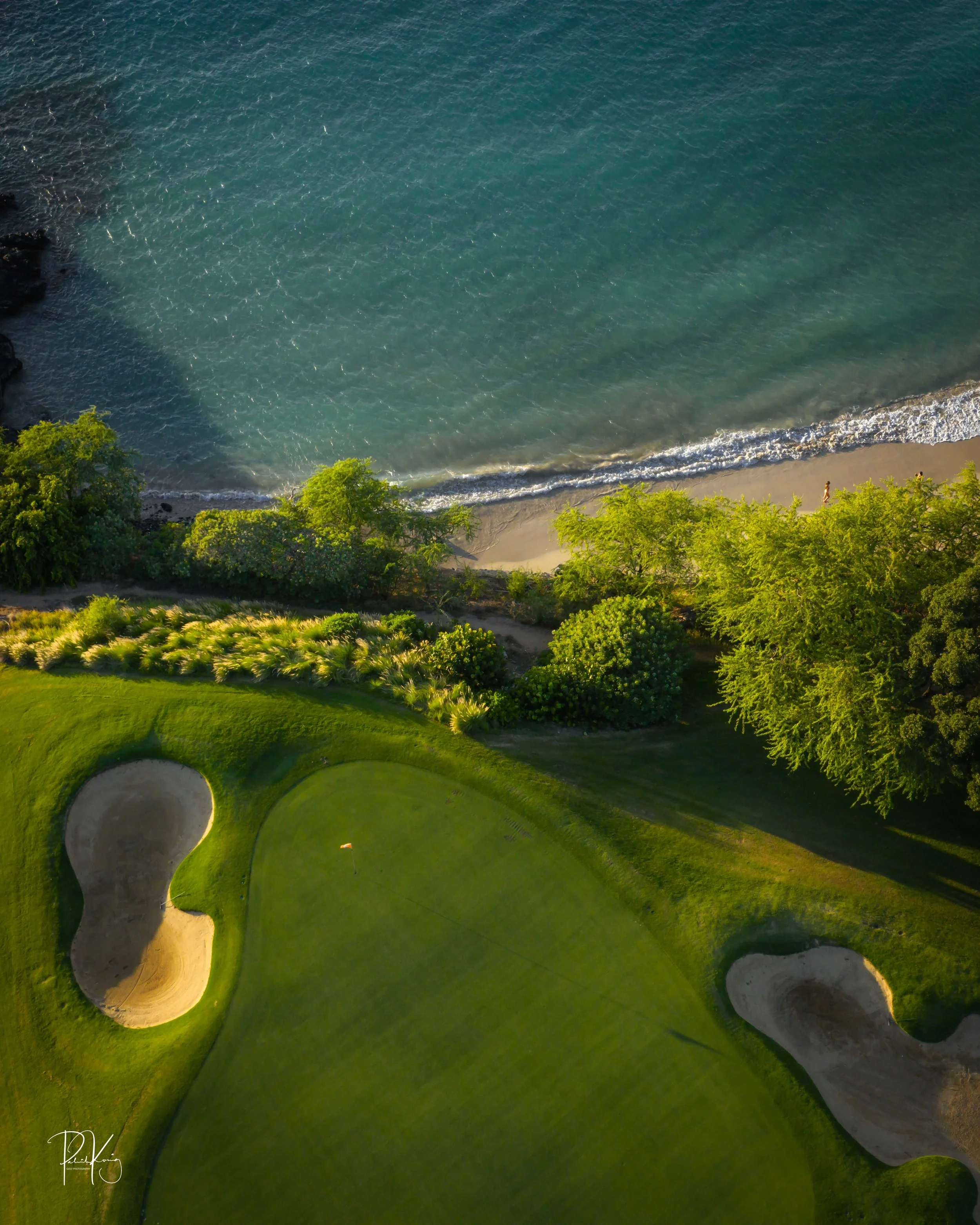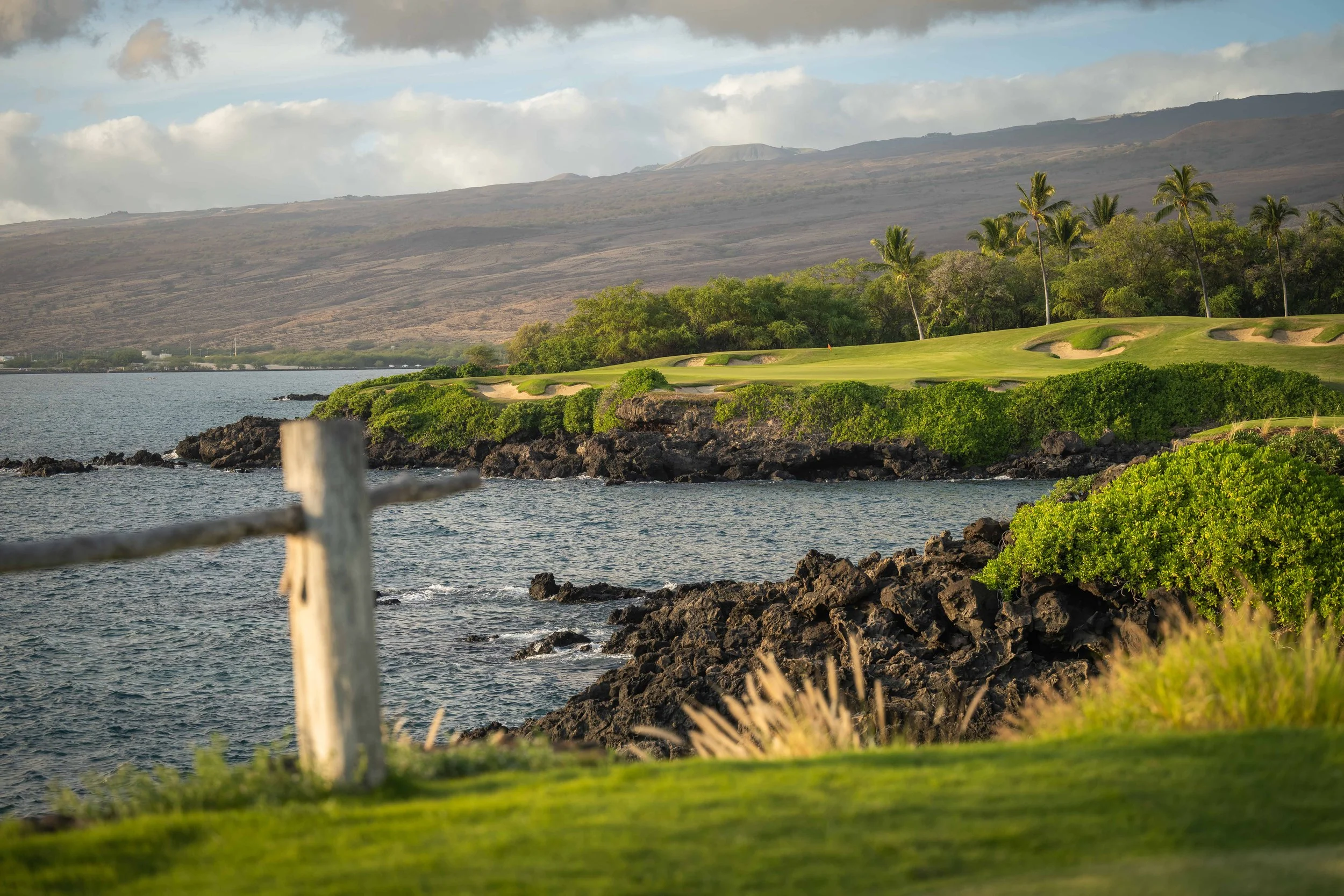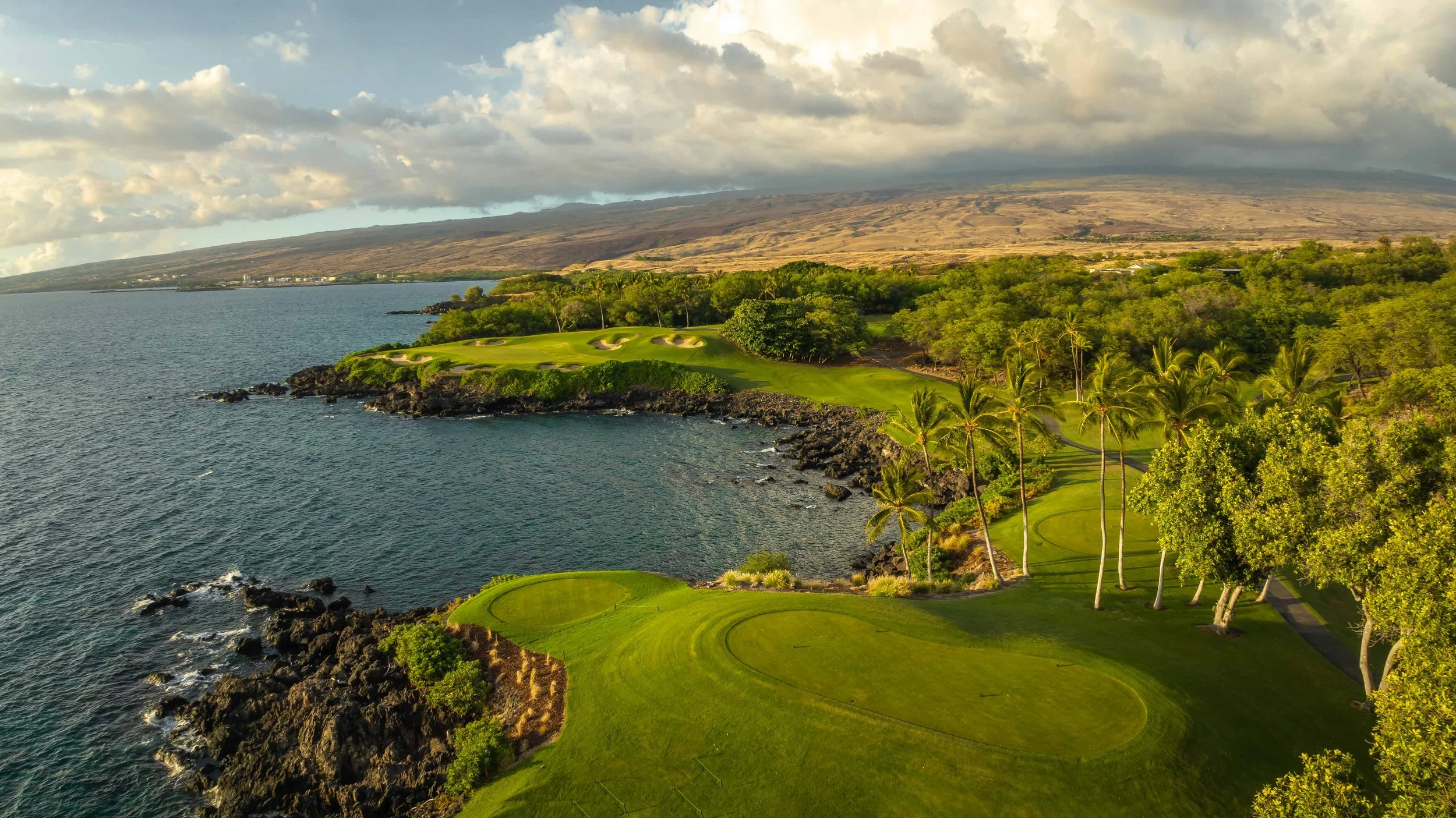 The 3rd hole is the signature hole at Mauna Kea and one of the grandest ocean side par 3’s in Hawaii. At 272 from the championship tees, the 3rd hole is also one of the longest carries over the ocean in golf. Almost no one plays the back tees unless you want to ensure a donation to the sea serpents. Most golfers will play 180 yards over the ocean to a large green. Finding the green here always feels like a grand sense of accomplishment. As this is one of the most scenic golf holes in Hawaii, I am including an unprecedented 16 images of this golf hole. This hole is a stunner.