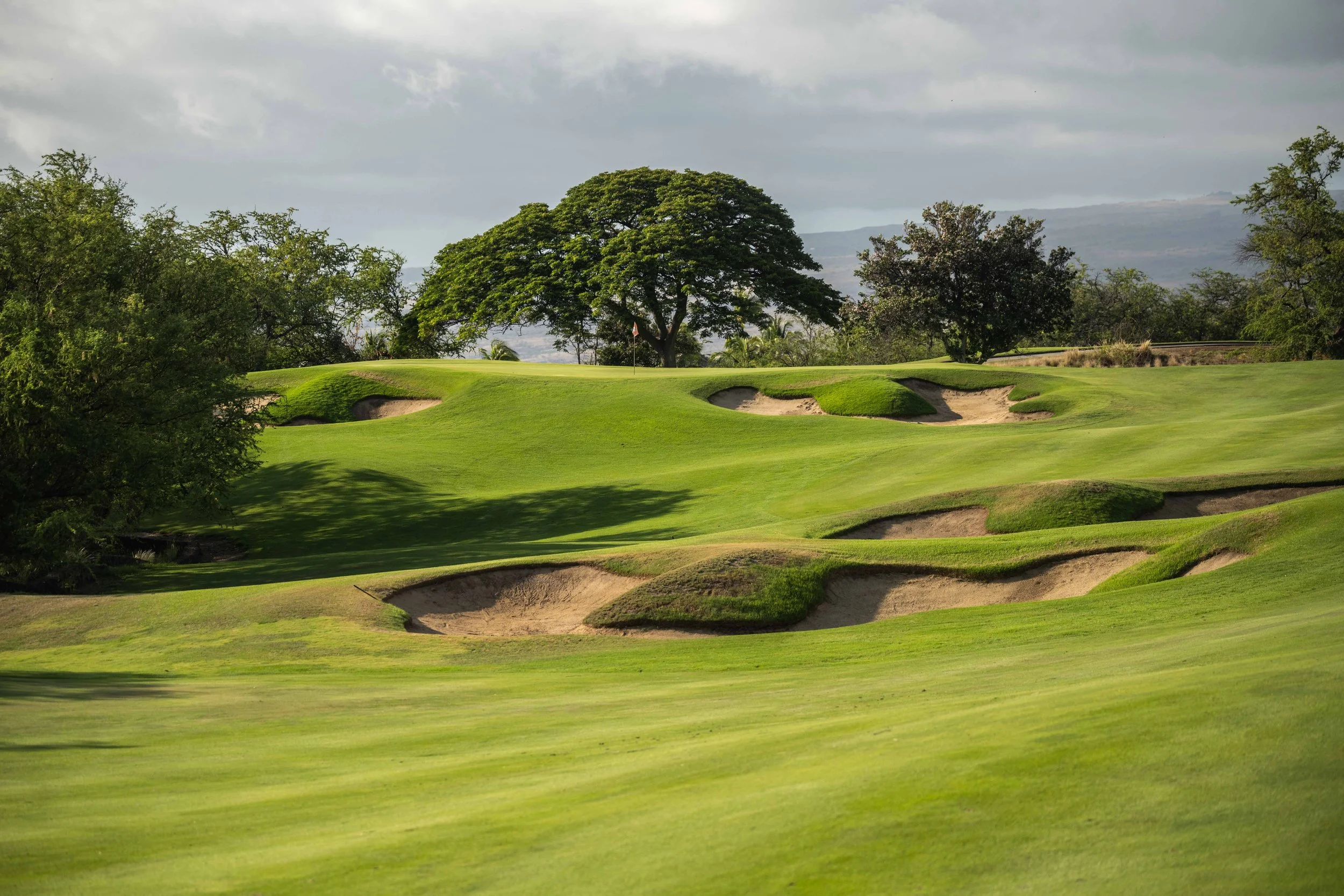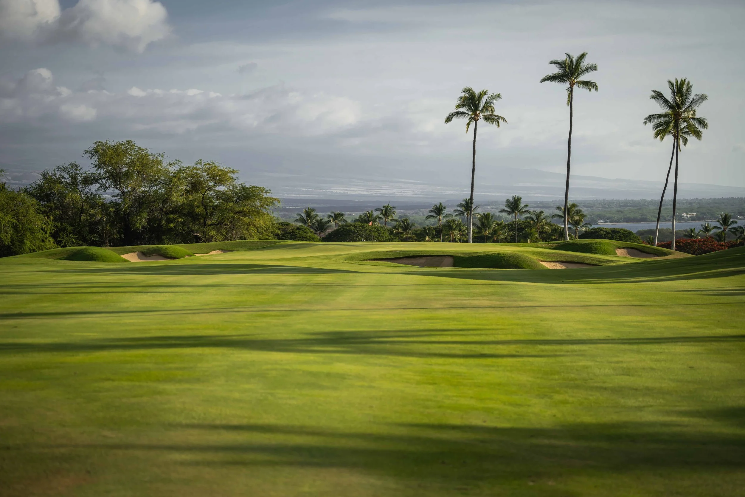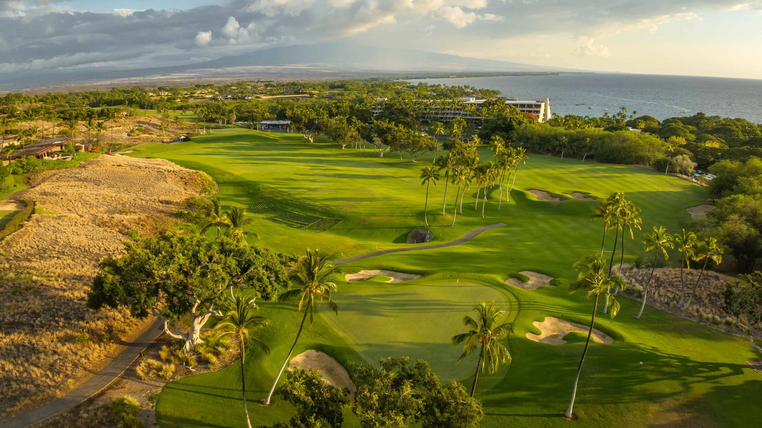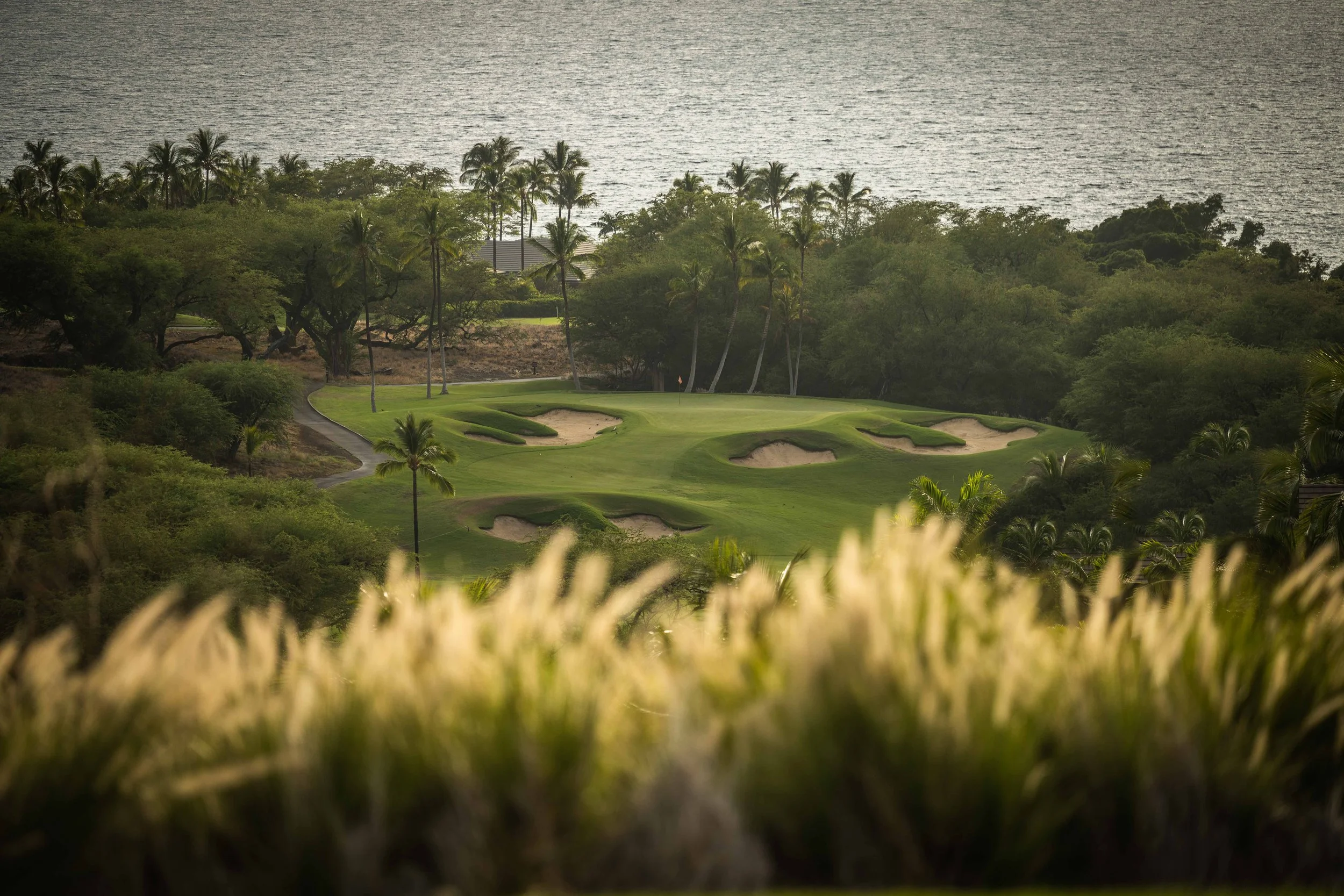 The front nine finishes with a fun downhill par 4 and sweeping views of the ocean and Mauna Kea resort. With the entire golf hole sloping down and towards the ocean, the 9th plays much shorter than the scorecard suggest. The green is also well protected with a trio of bunkers. A quick look to the left and you will get a preview of the 18th green which sits right next to the 9th hole. Any wise golfer will take a peak at the pin location and the slope of the green. A good mental note can come in handy when assessing your upcoming approach into 18.
