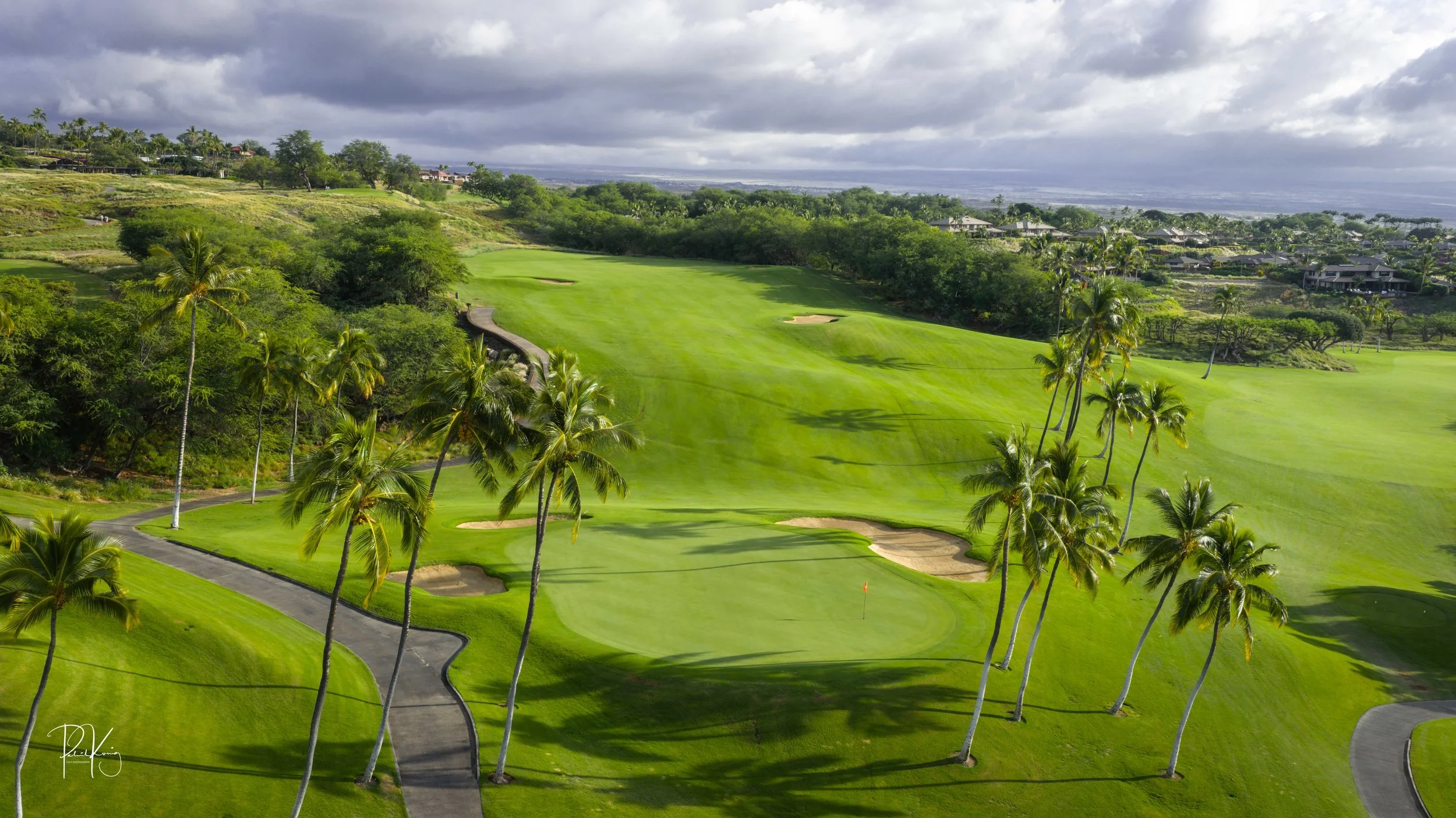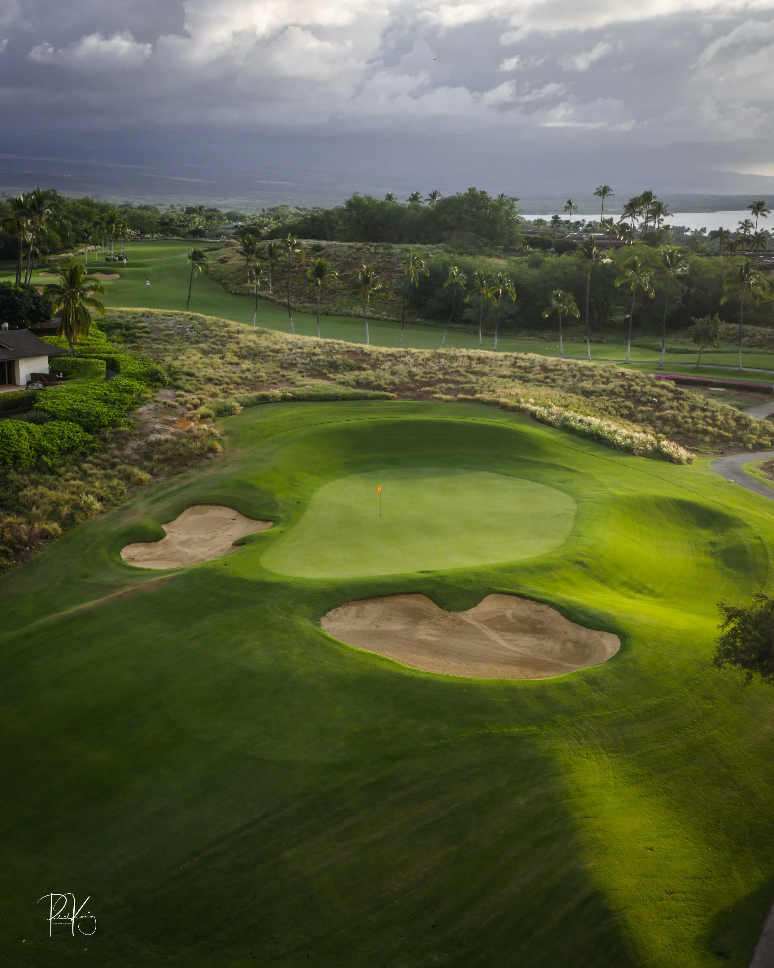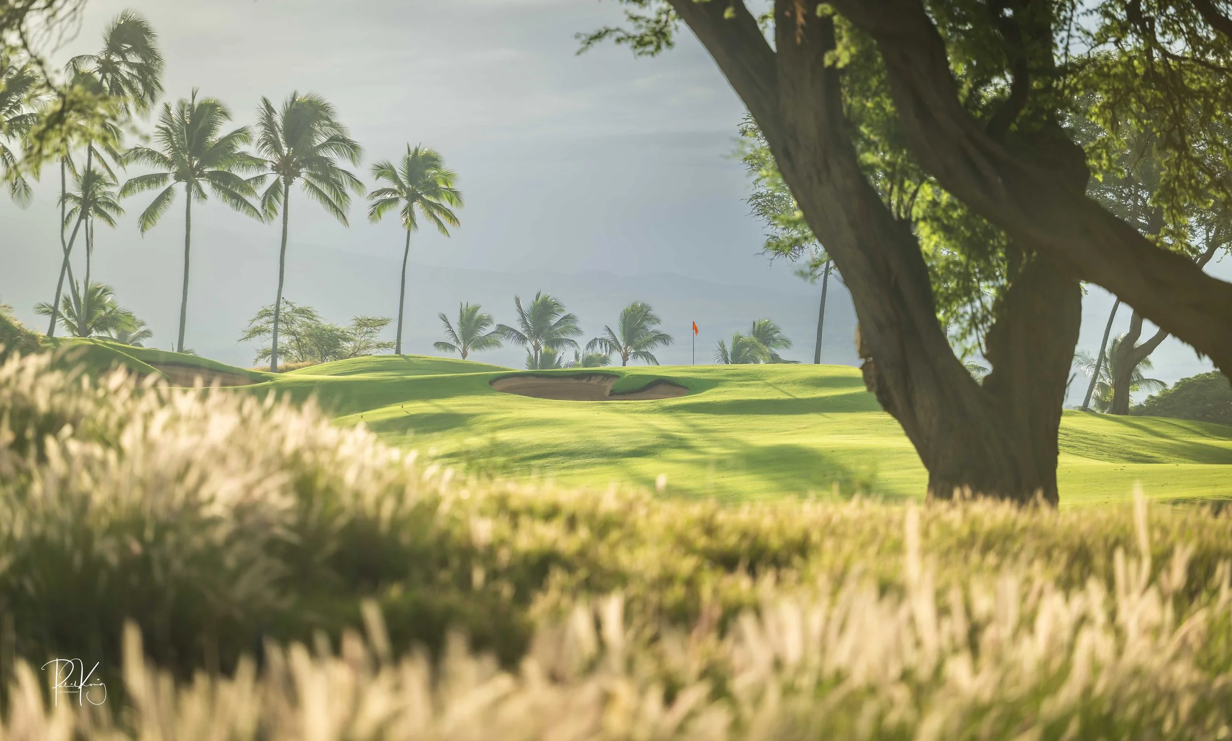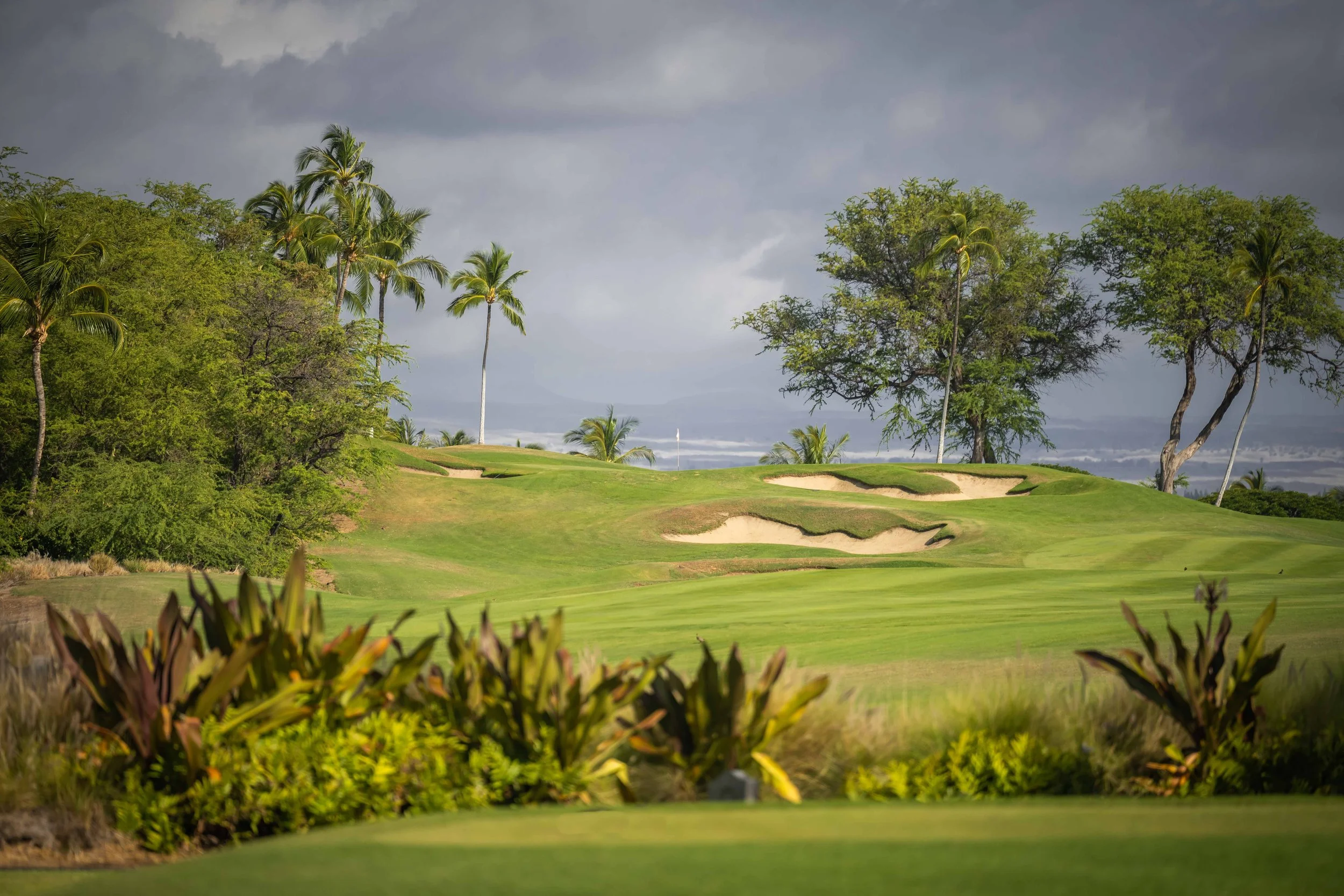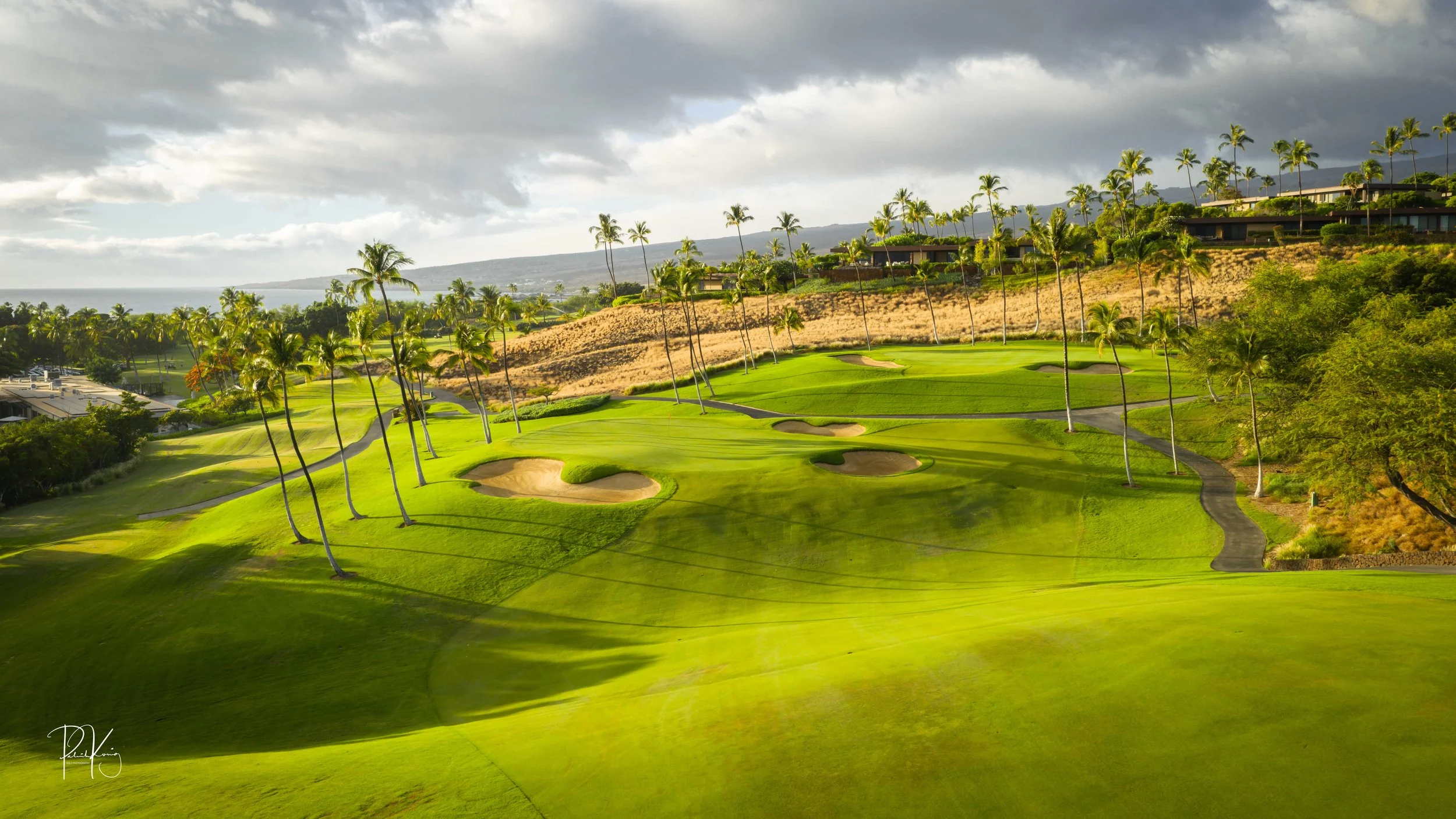 The front nine finishes with a fun downhill par 4 and sweeping views of the ocean and Mauna Kea resort. With the entire golf hole sloping down and towards the ocean, the 9th plays much shorter than the scorecard suggest. The green is also well protected with a trio of bunkers. A quick look to the left and you will get a preview of the 18th green which sits right next to the 9th hole. Any wise golfer will take a peak at the pin location and the slope of the green. A good mental note can come in handy when assessing your upcoming approach into 18.