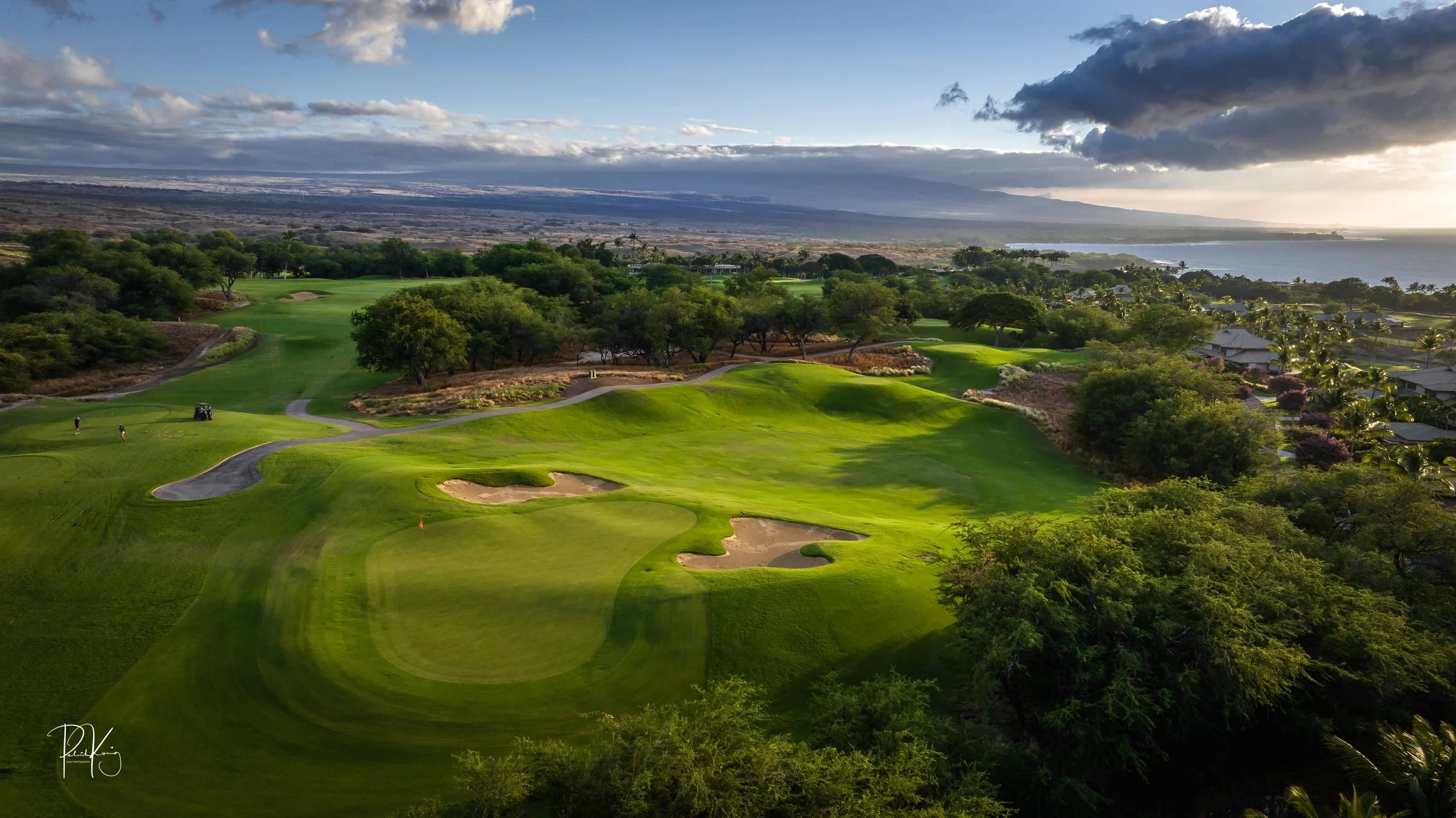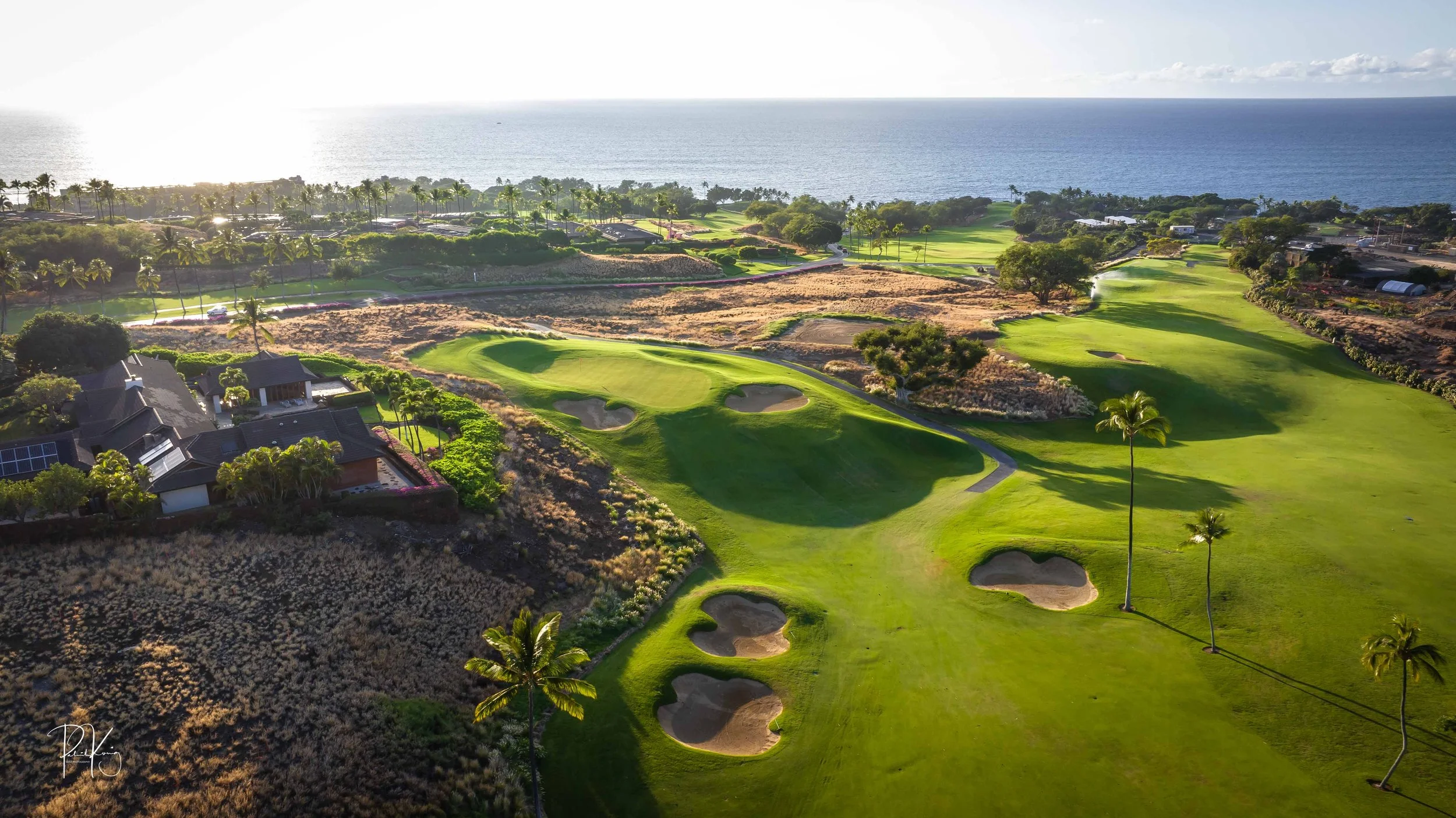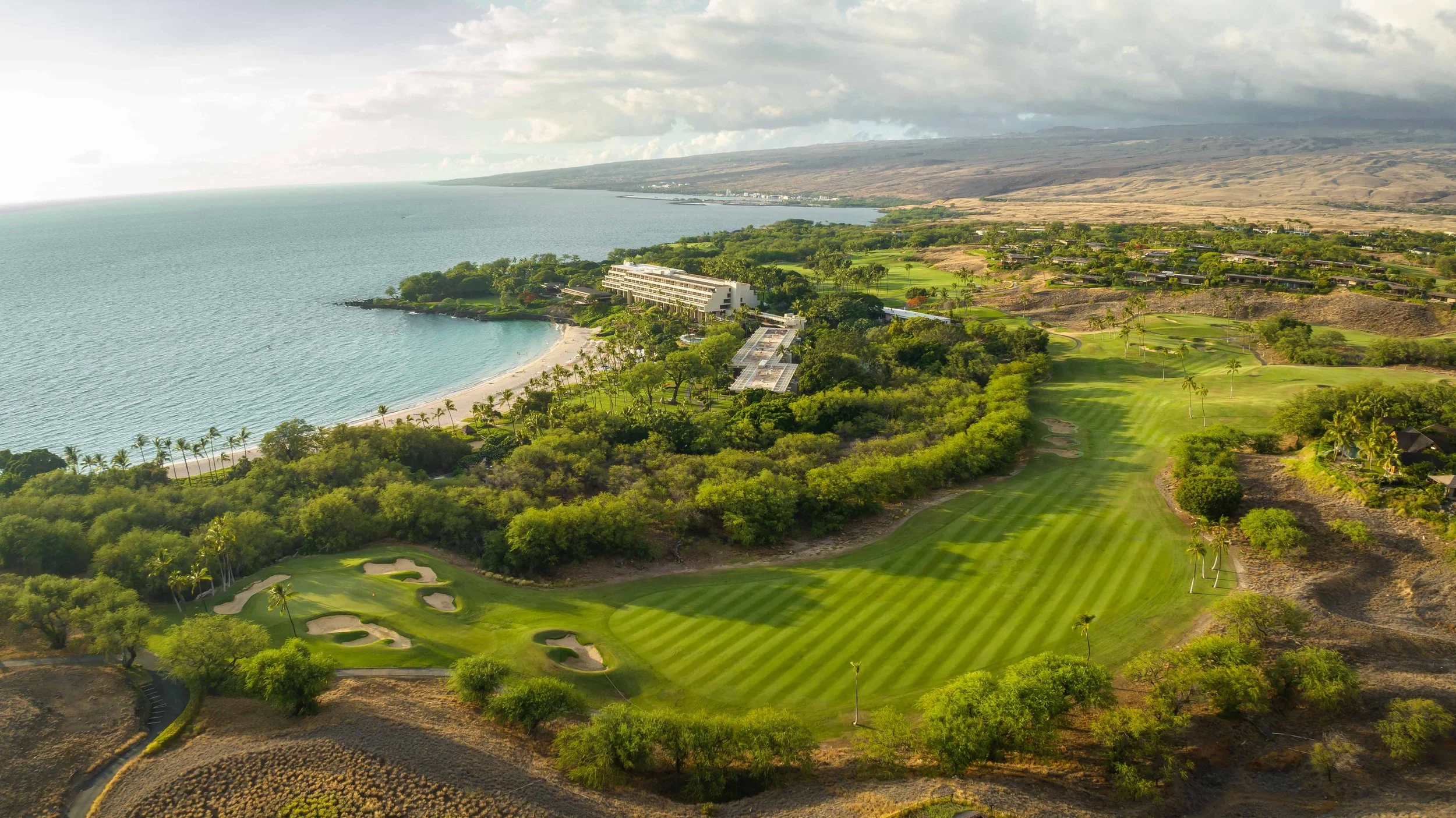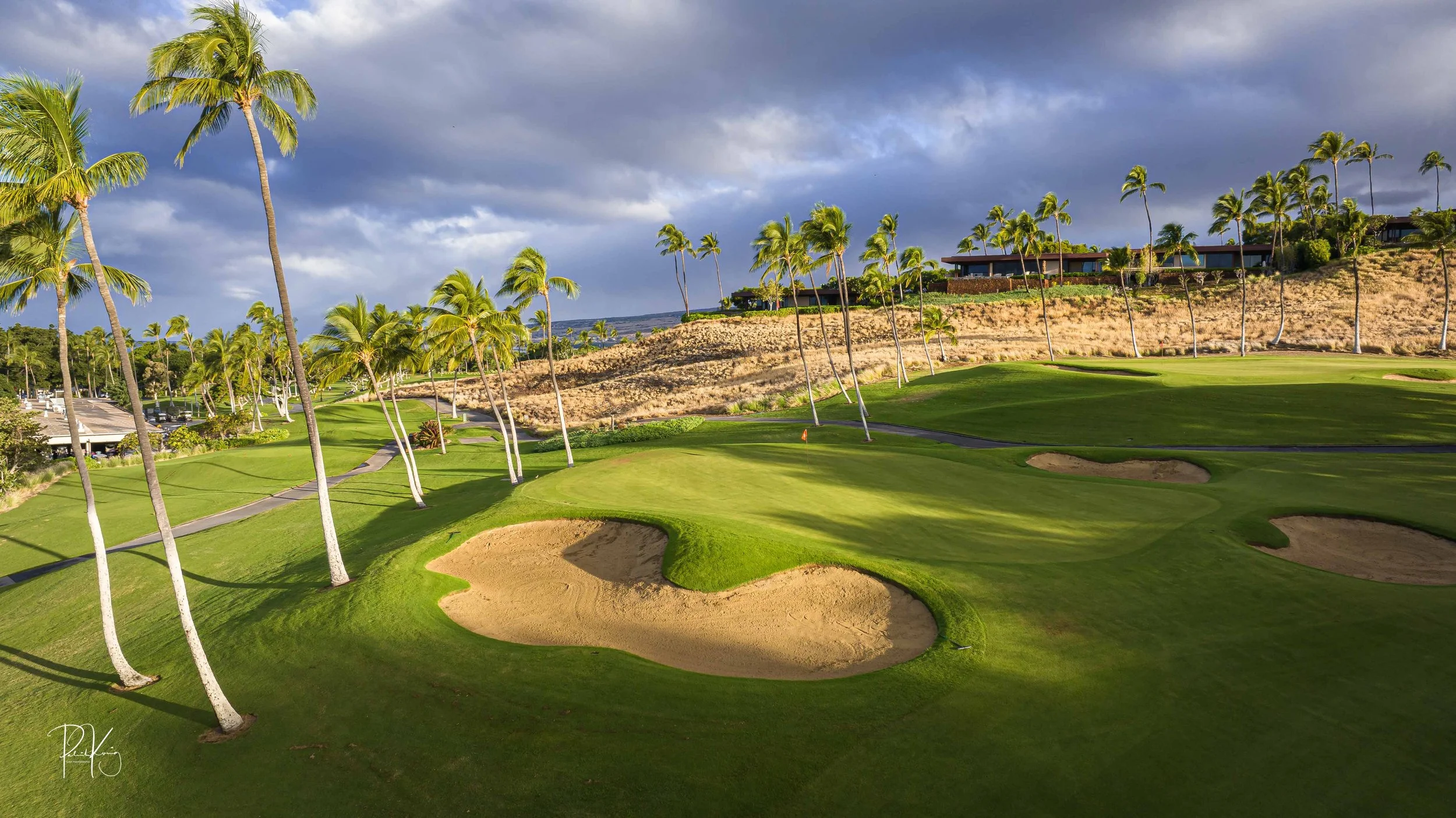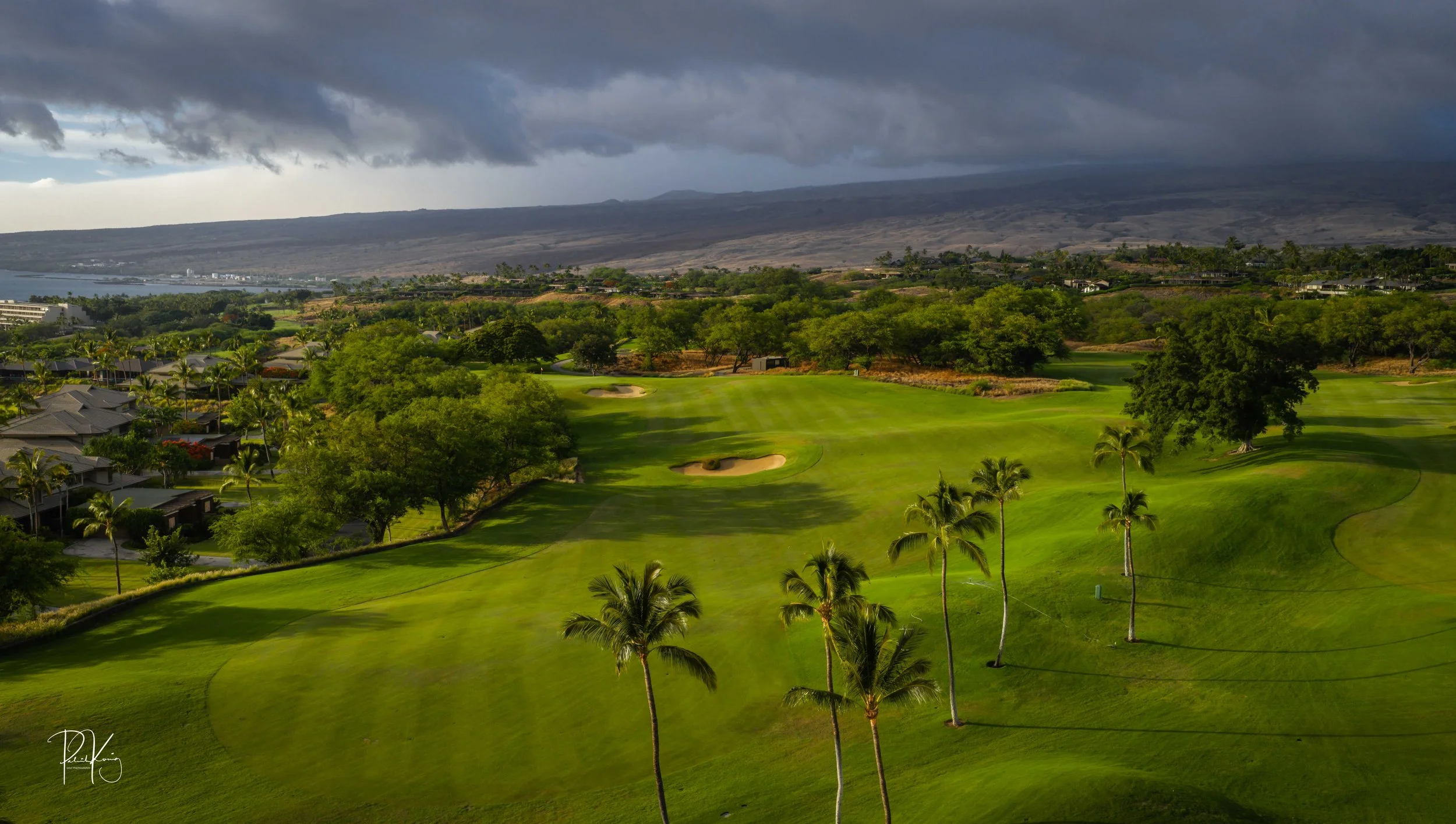 The front nine finishes with a fun downhill par 4 and sweeping views of the ocean and Mauna Kea resort. With the entire golf hole sloping down and towards the ocean, the 9th plays much shorter than the scorecard suggest. The green is also well protected with a trio of bunkers. A quick look to the left and you will get a preview of the 18th green which sits right next to the 9th hole. Any wise golfer will take a peak at the pin location and the slope of the green. A good mental note can come in handy when assessing your upcoming approach into 18.