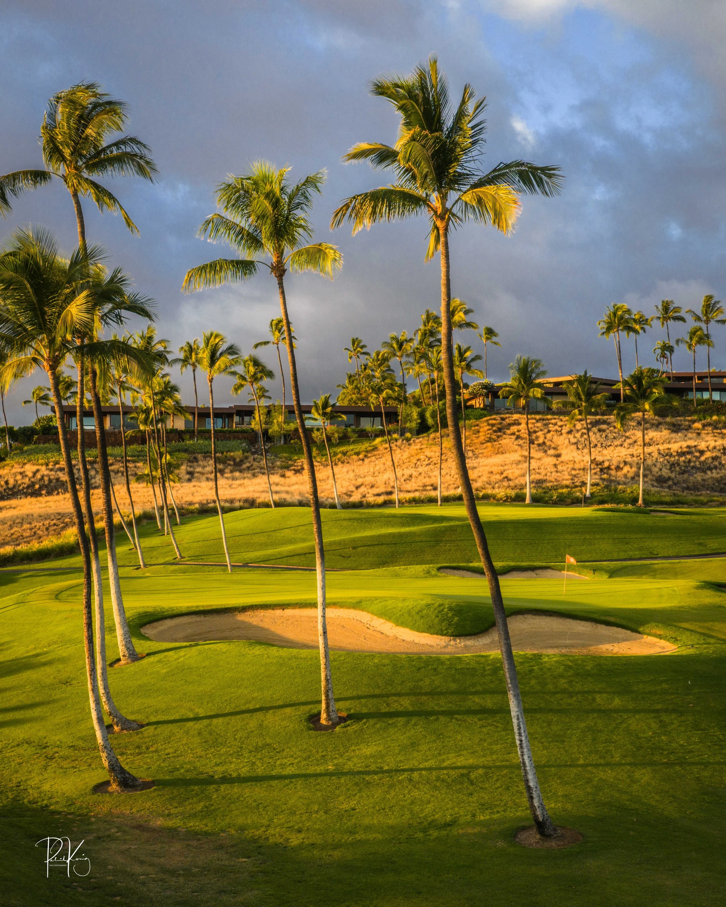 The second hole on the back nine gives the golfer their second visit to the ocean front and a fantastic view of the Mauna Kea resort. It’s not the signature hole but it does provide a signature moment. This lengthy par 3 requires a long iron if you want to find the green. Coming up short here is a good miss. Anything that misses the green left or right and fails to get caught up in the bunkers encounters a real possibility of cascading down the hill and into the brush. Which means that your golf ball will spend eternity amongst the lava rocks and you will head to the next tee box with your golf bag weighing approximately 1.62 oz less.