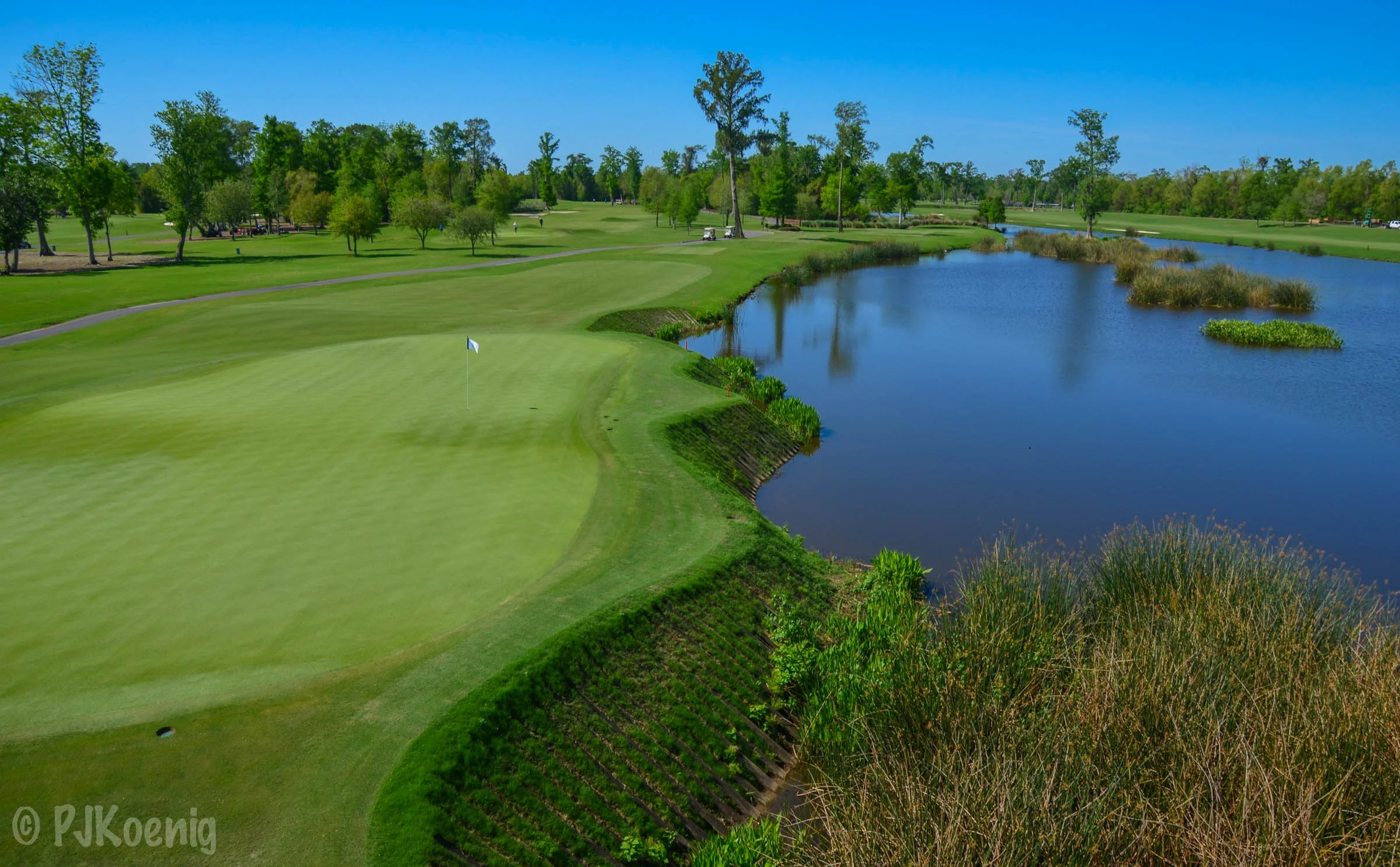 Naturally, I was not going to lay up on my visit. I pulled out the 3 wood at about 230 out and into a stiff breeze. I ripped one right at it. Unfortunately it began to draw and made a pretty big splash as it missed left. Glory was not mine on that fine day in New Orleans.