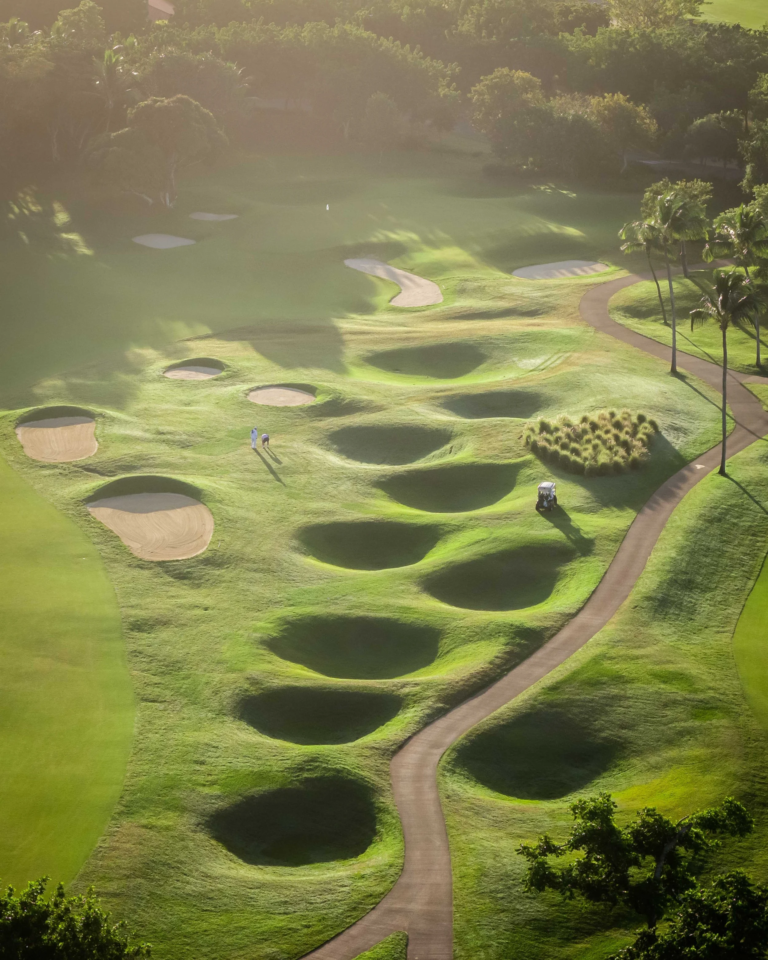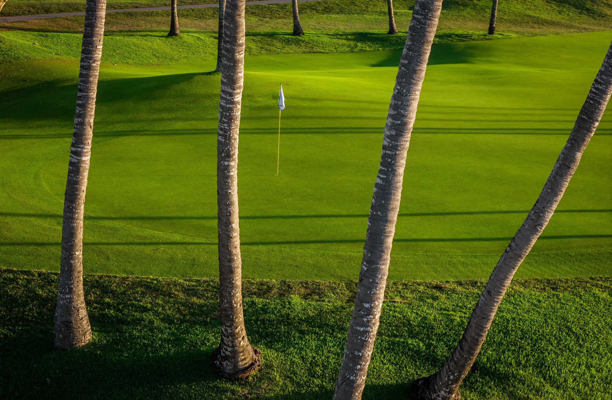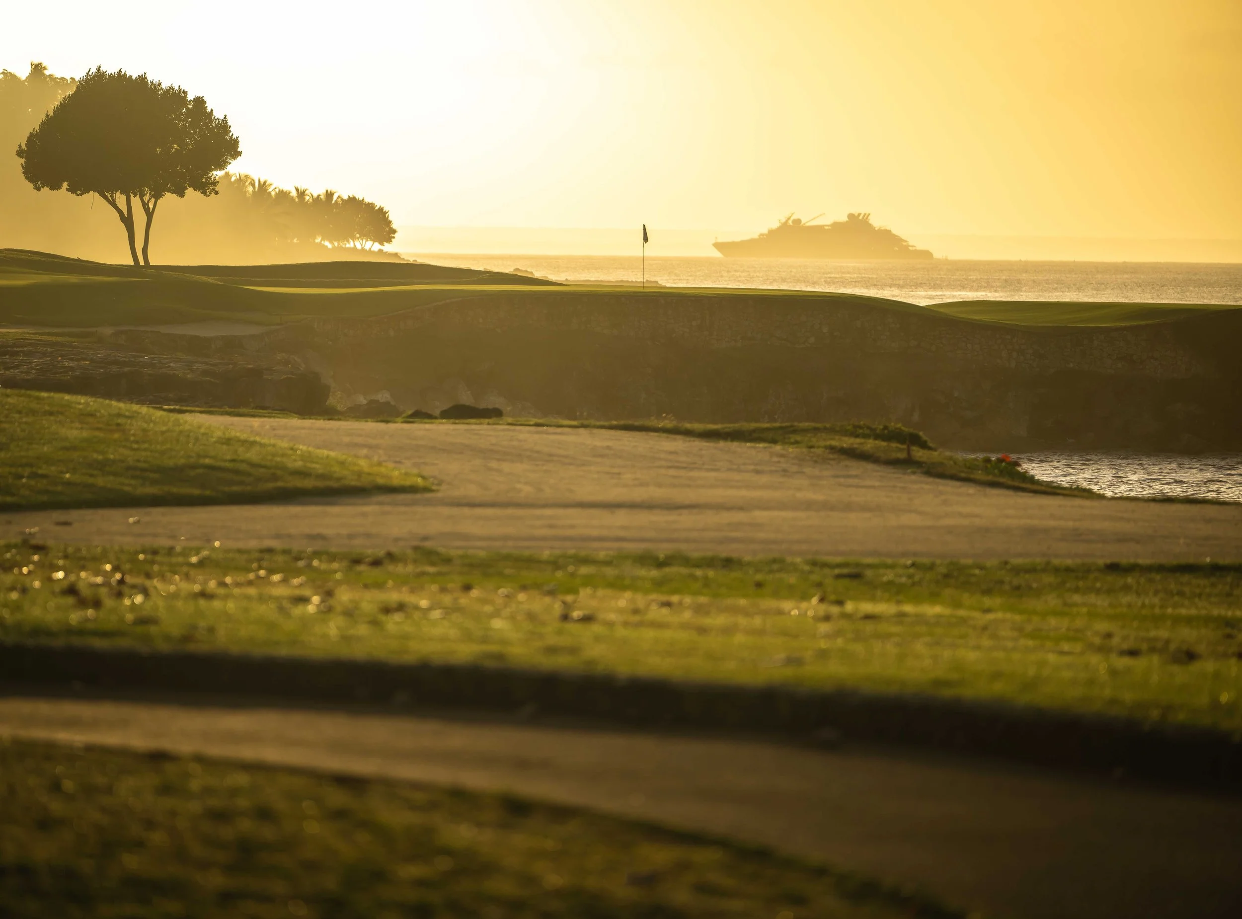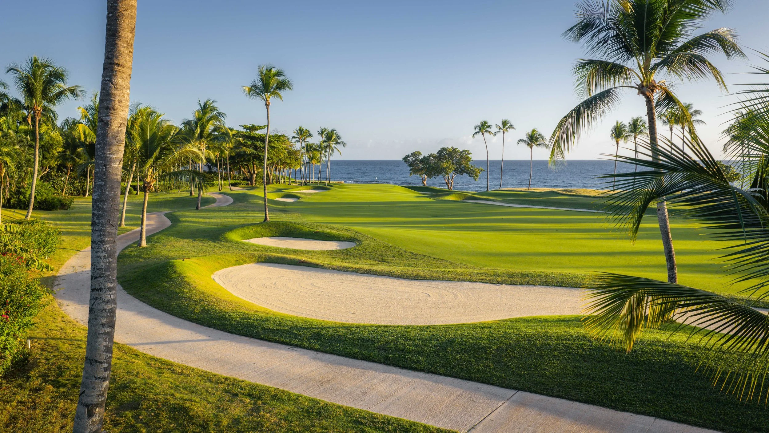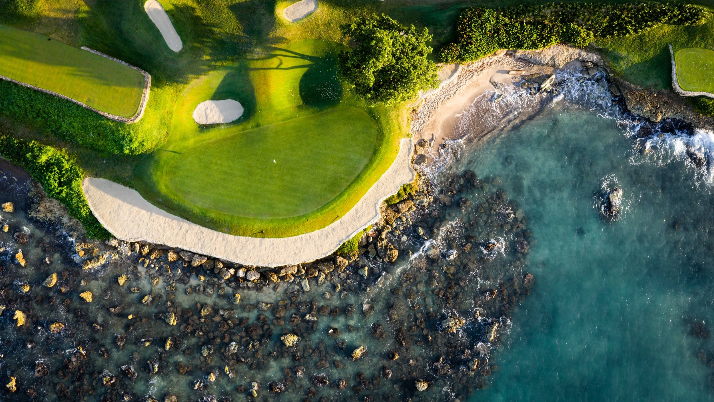 A short walk beyond the 5th green is the glorious 6th tee box. The new tee boxes have been shuffled around to provide an even more dramatic tee shot down the coastline. You can bail out to the right, but that only makes your approach shot more difficult. The green has a beautiful smattering of palm trees that can provide some interest to any golf shot that doesn’t find the putting surface.