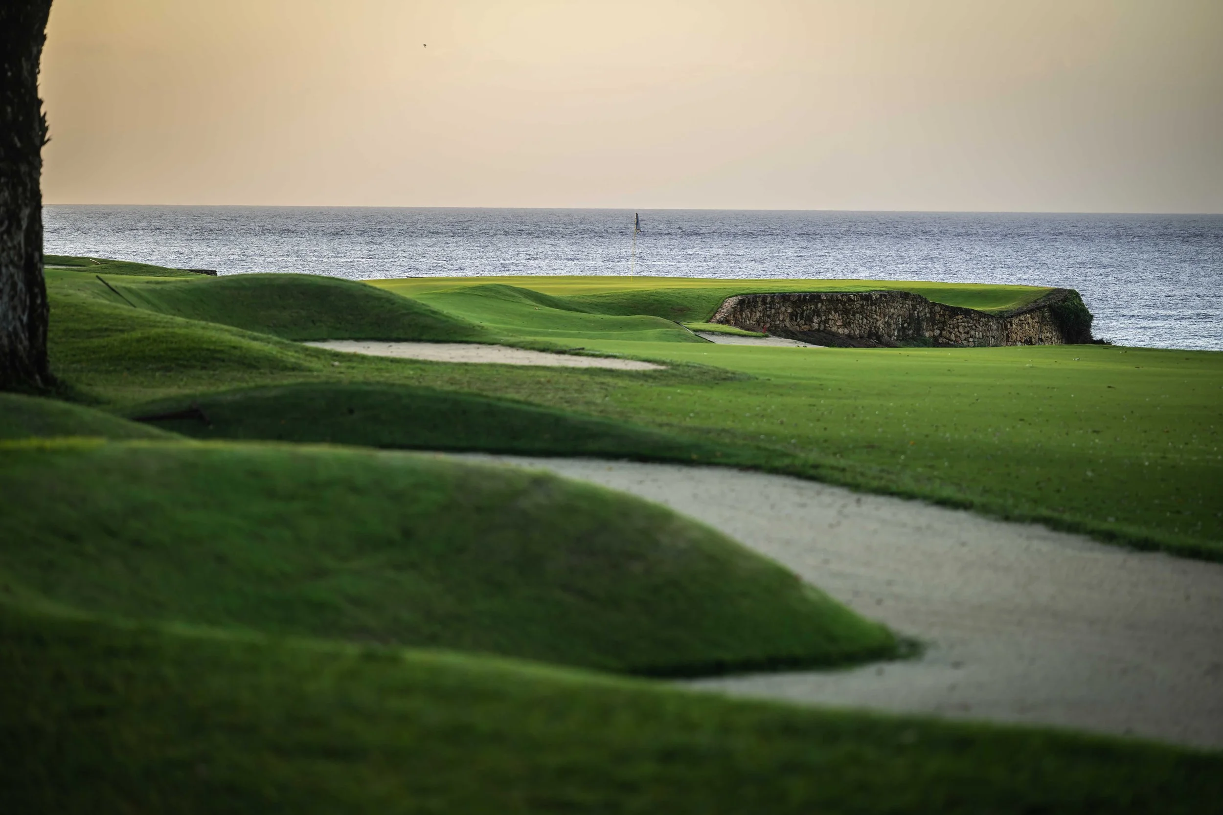 All of the world’s greatest golf designs do an excellent job at leveraging the land that they rest upon. Dye’s simple and effective routing does a great job at providing balance to the round and ensures that the golf greets the sea early and late in the round. With the sun setting in the distance, the round begins its climax by the sea on the 15th hole.