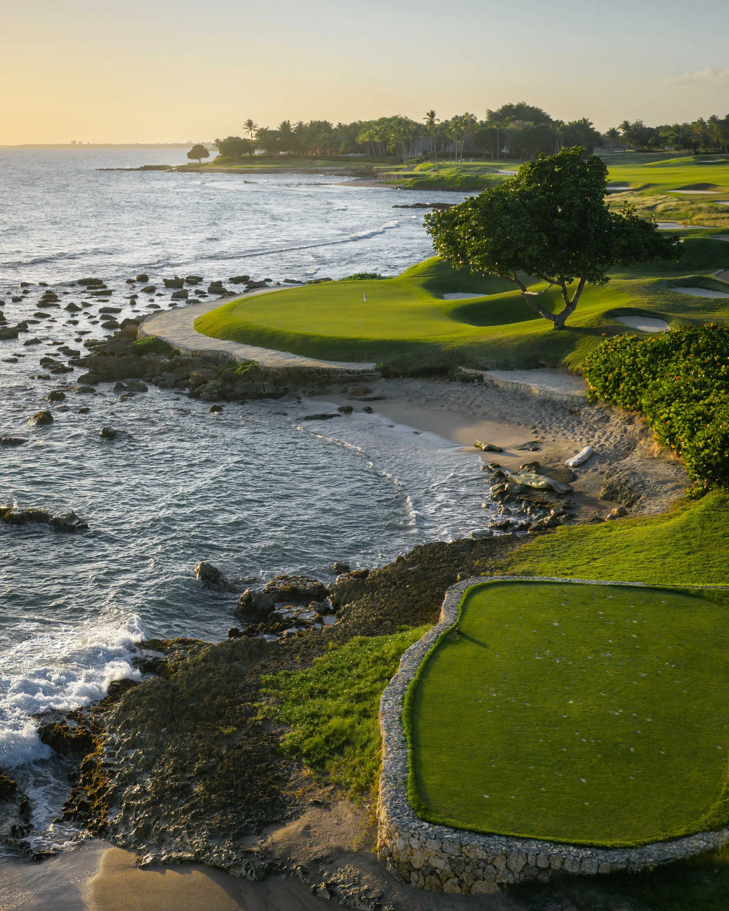 When it comes to the greatest short par 3’s in the world, the 5th at Teeth of The Dog is on the short list. At only 168 yards from the back tees, this golf hole still presents a ton of drama. The breeze of the Pacific, the beach before you and the spectacular stretch of golf to come is all packed into one glorious swing. This short and beautiful par 3 is nearly one with the ocean. Every time that I visit Casa De Campo I get more and more serious about burying my body on this beach.