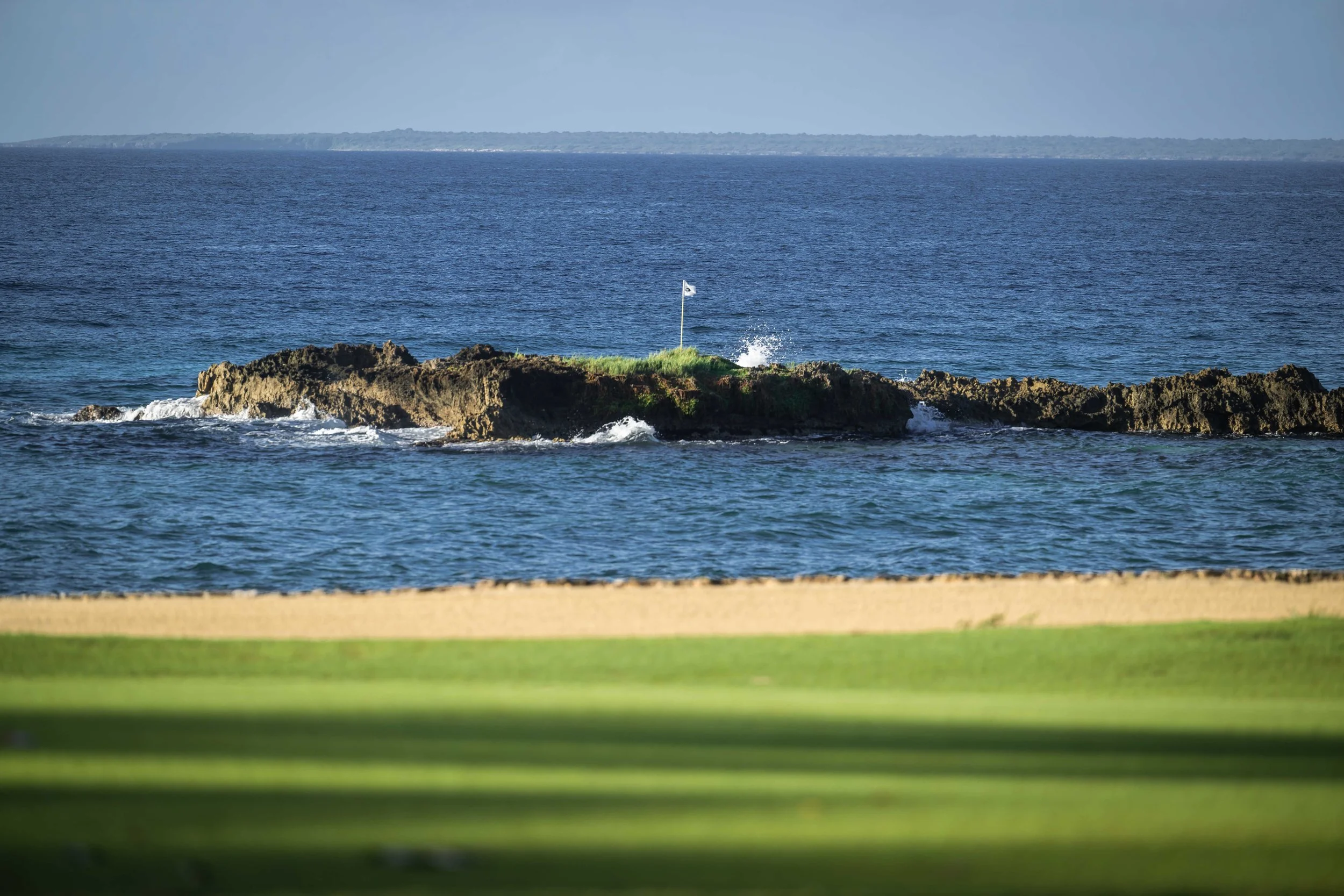 After you finish up on on the 15th green, most golfers will notice hole 15B in the middle of the ocean. The staff at Casa De Campo has wisely placed a pin flag on a nearby rocky island. While it is not Mount Everest, the sentiment remains the same.