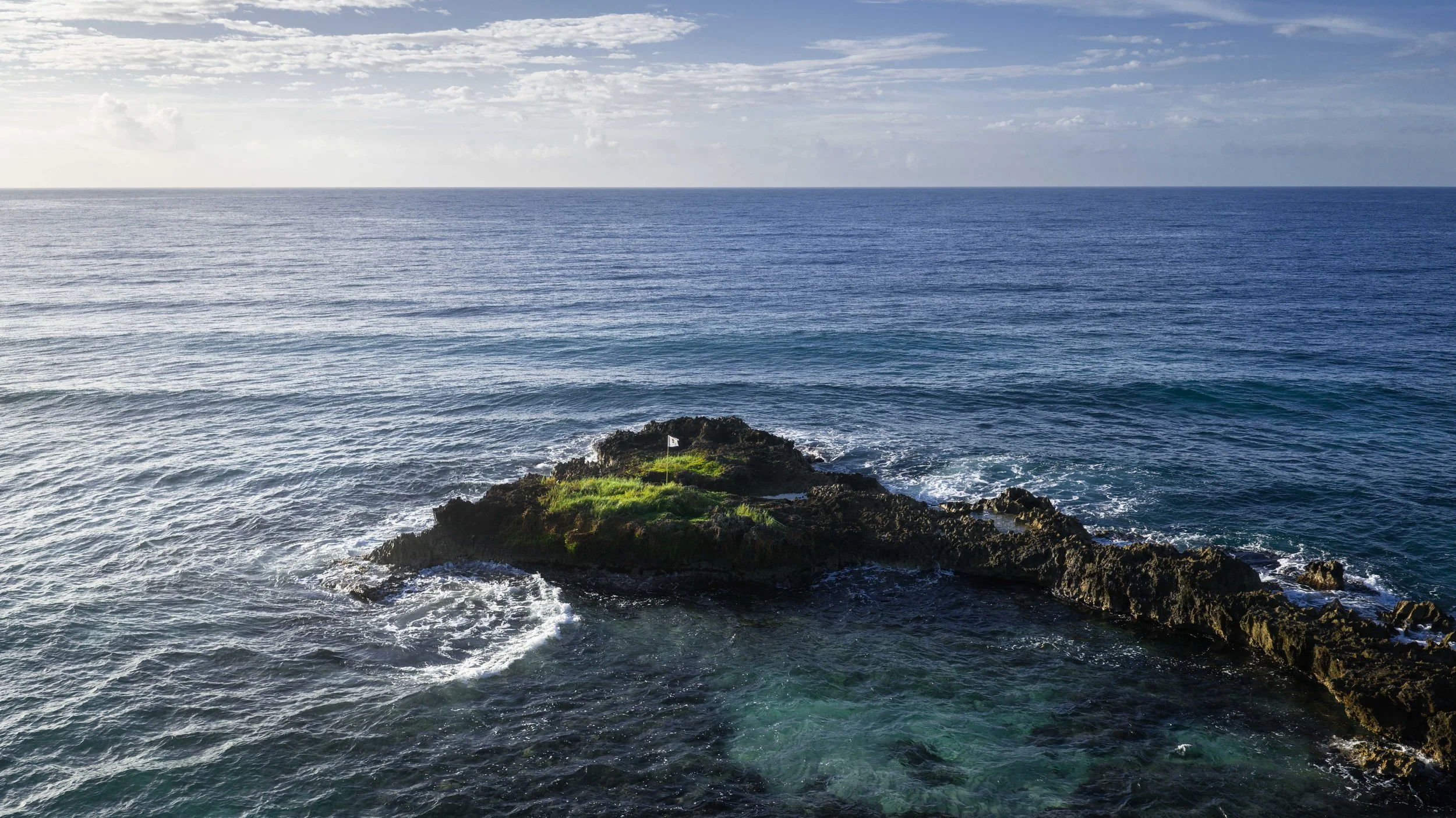 The final par 3 at Teeth of the Dog rises high above the ocean and along the island’s rocky shoreline. Given the size of the green, the 16th can play very differently depending on the pin location. A pin on the far left of the green feels safe. A pin far right tempts the golfer to take on the ocean and provides exceptionally high golf drama.