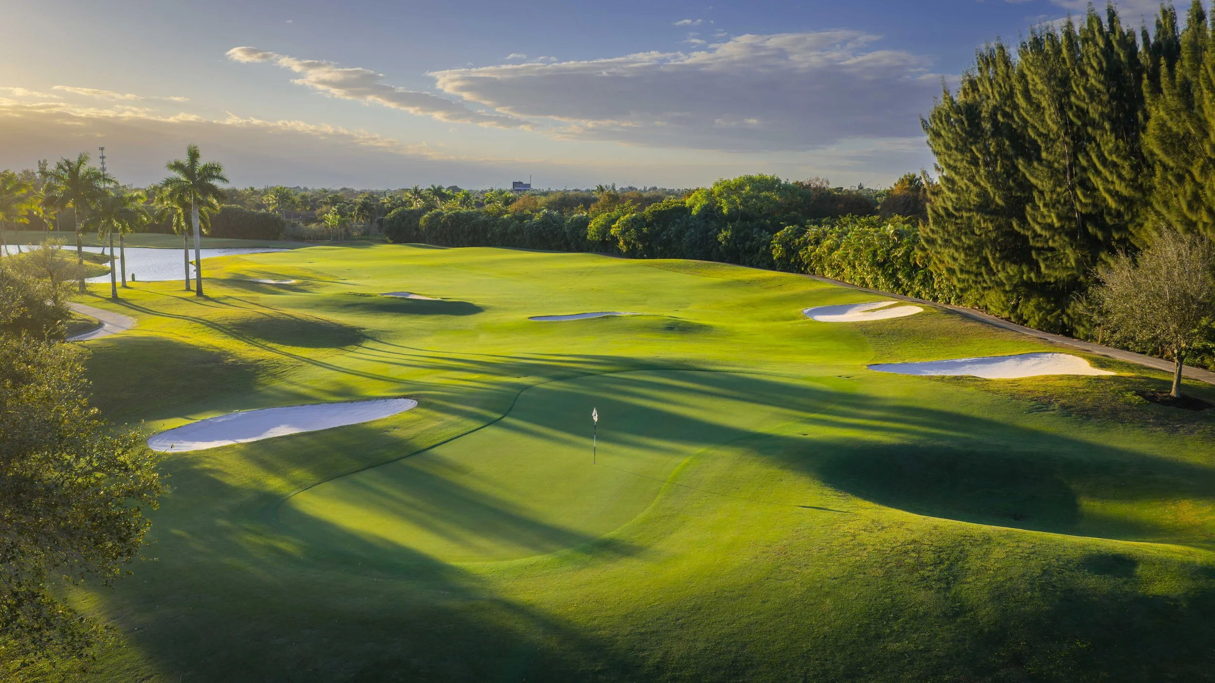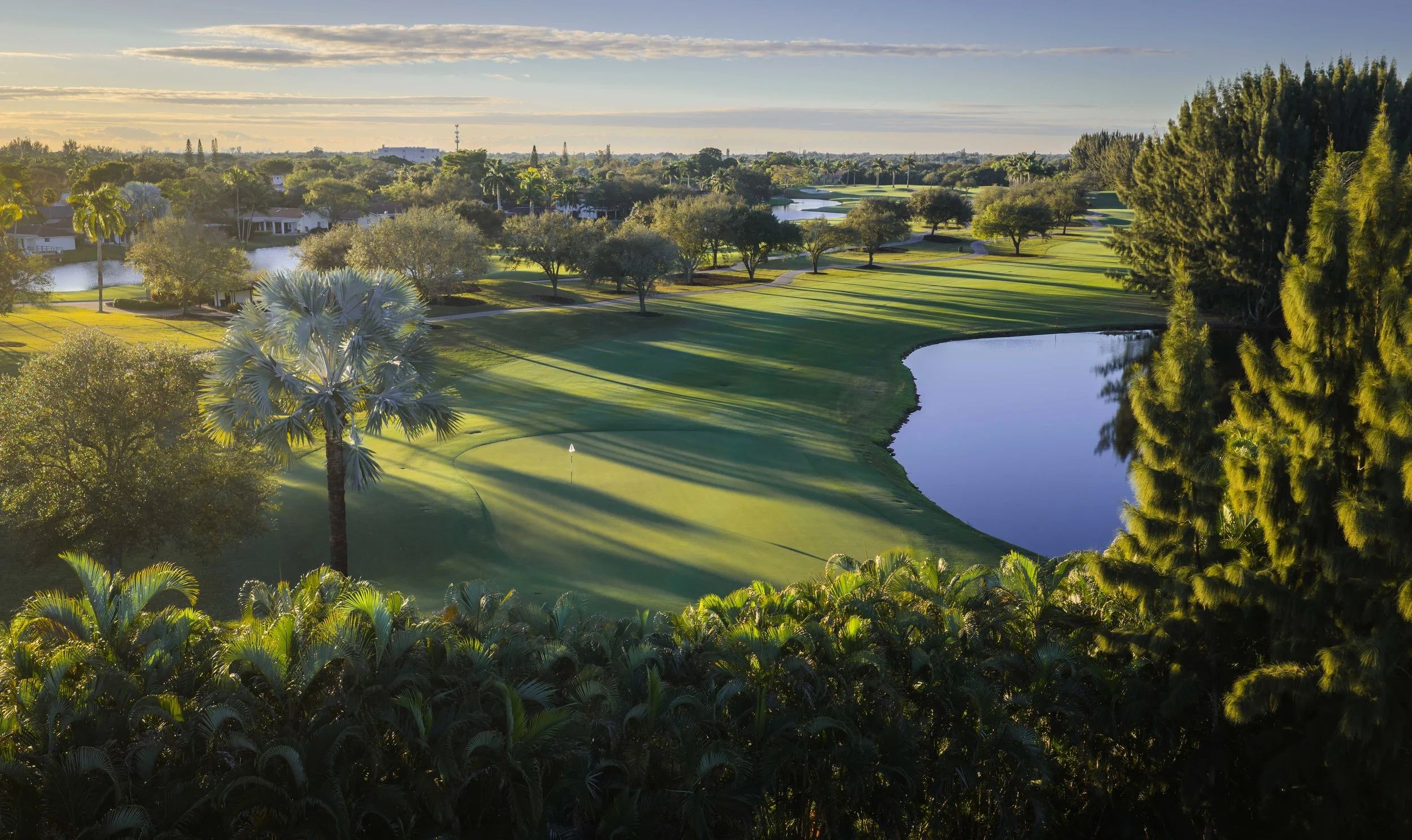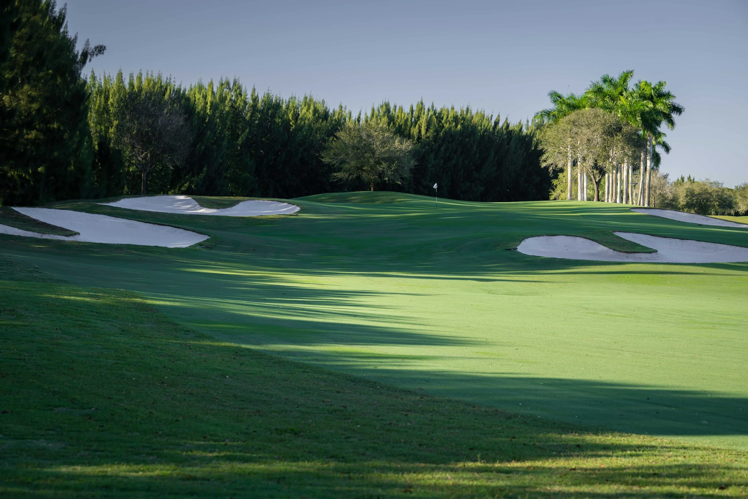 From the fairway, the 7th hole begs you to go for the green in two. From behind the green, it begs the viewer to move to Fort Lauderdale and join Lago Mar Country Club. The dense palm wall provides a lush foreground and the pond to the right of the green frame this green to near perfection.